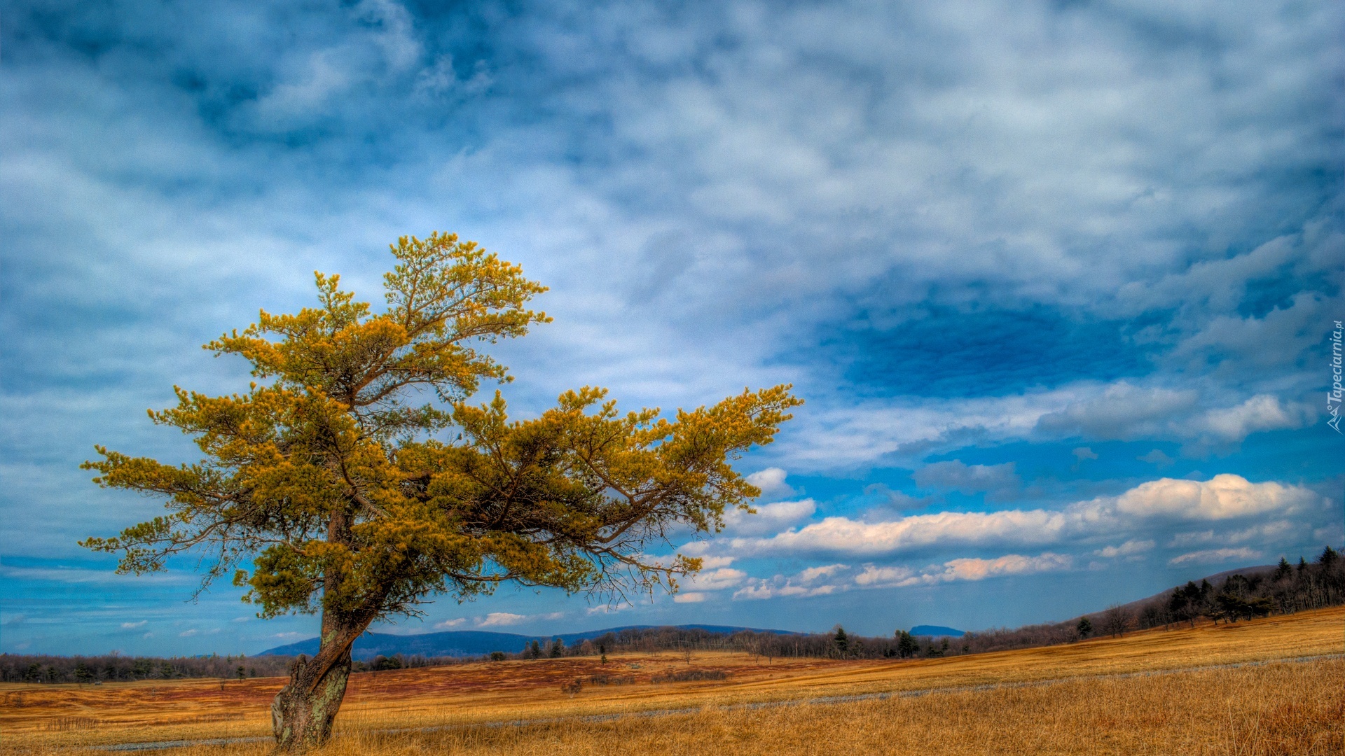Edytor tapety: Drzewo, Łąki, Góry, Chmury, Jesień