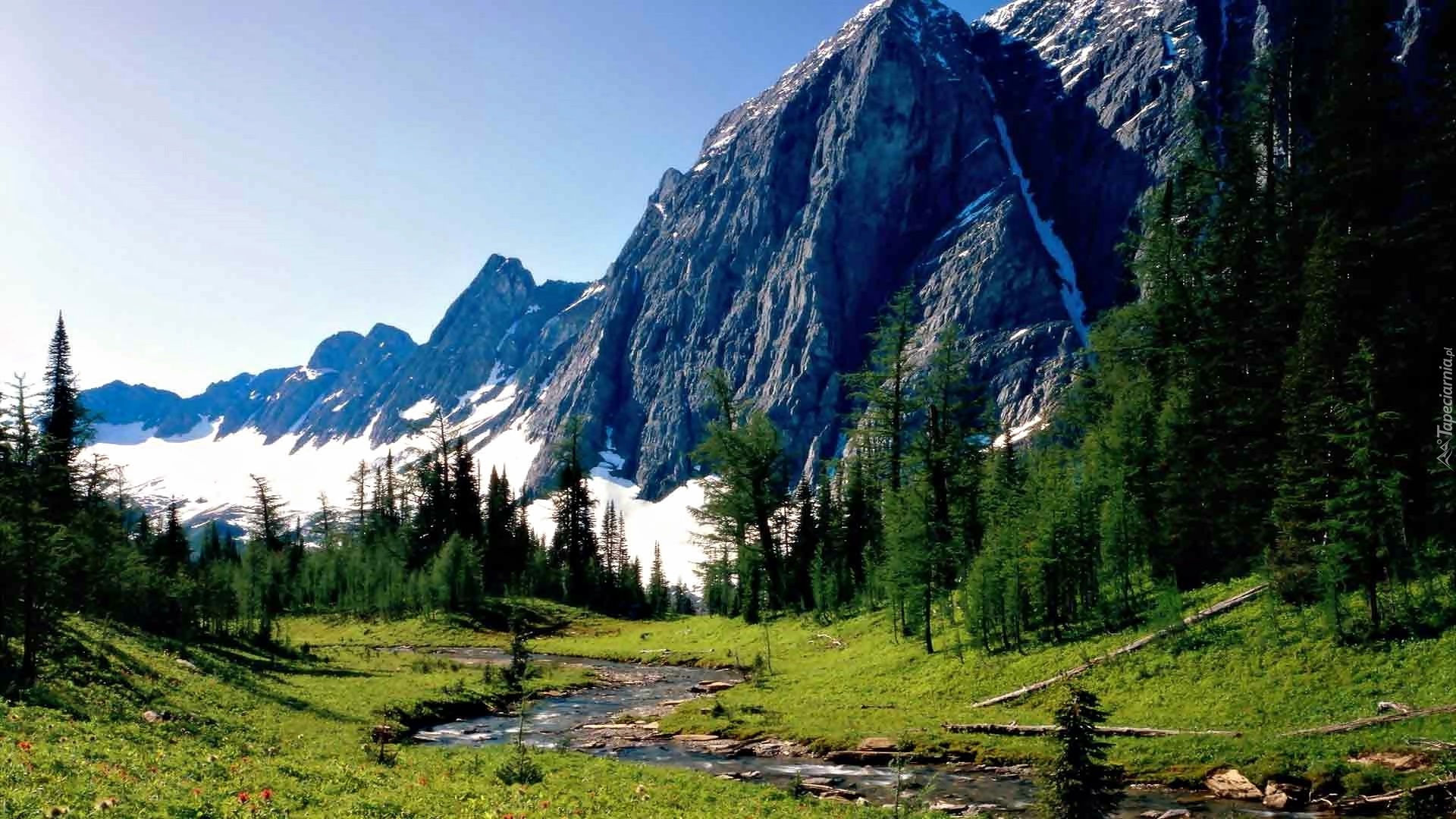 Edytor tapety: Góry, Rzeka, Łąka, Świerki