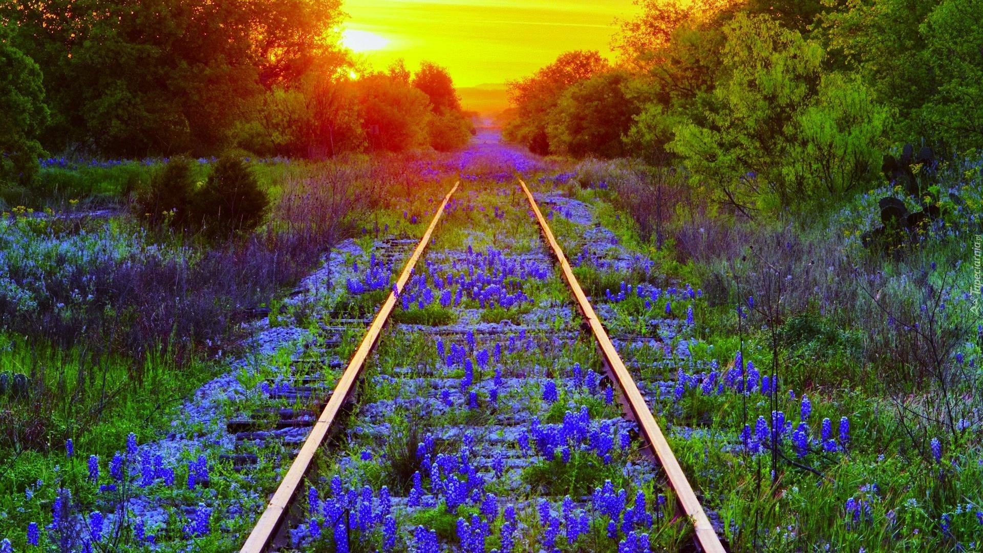 Edytor tapety: Tory, Kwiaty, Drzewa, Zachód Słońca