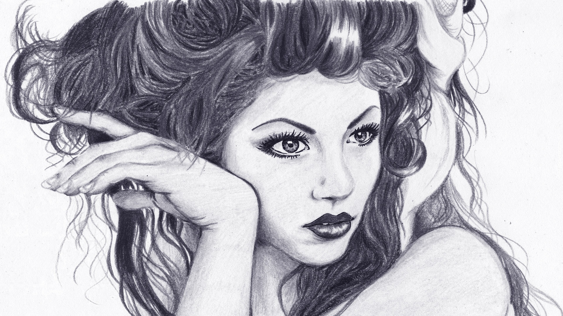 Edytor tapety: Twarz, Rysunek, Wykonany, Ołówkiem, Kobieta