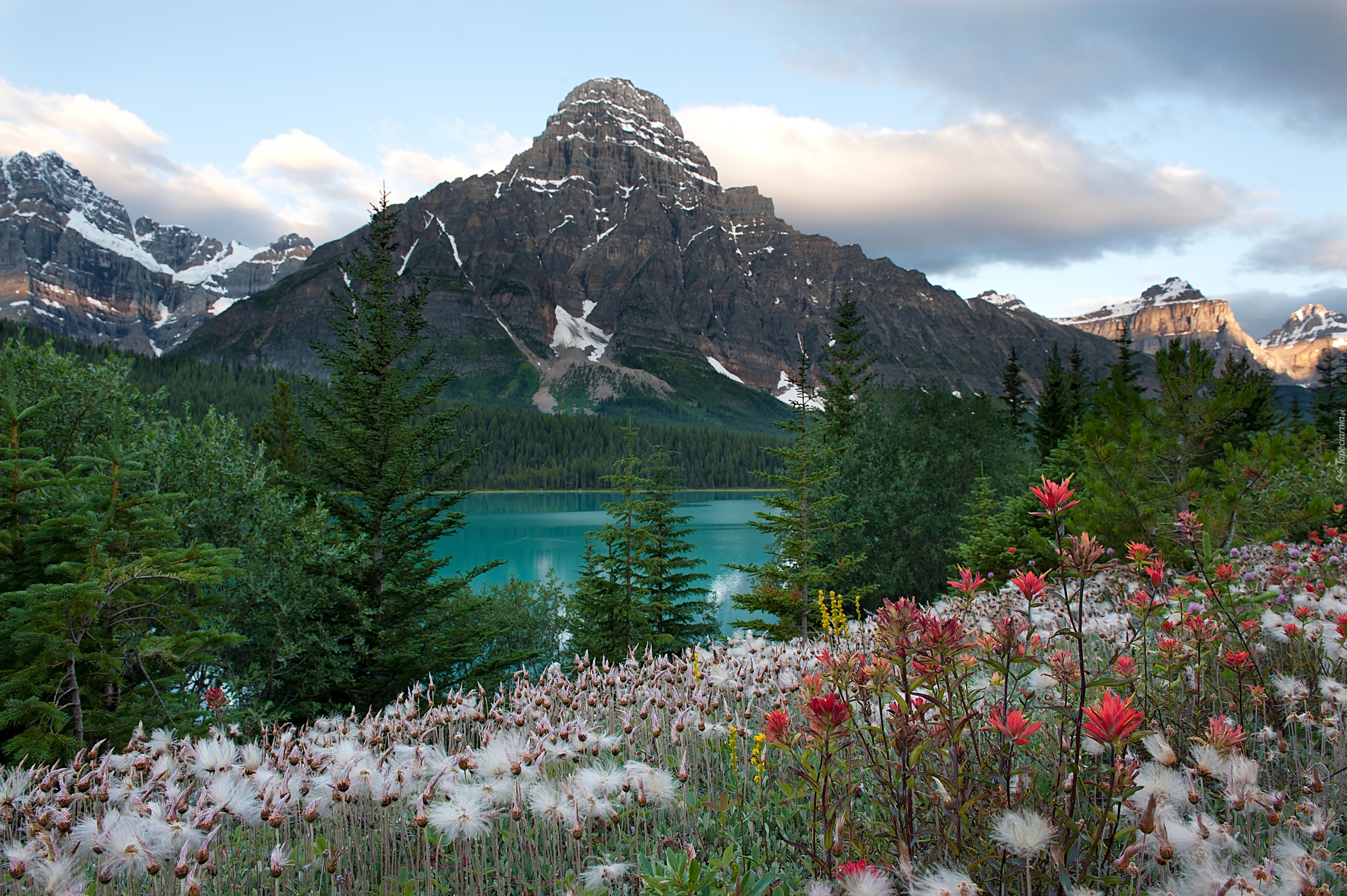Edytor tapety: Góry, Jezioro, Kwiaty