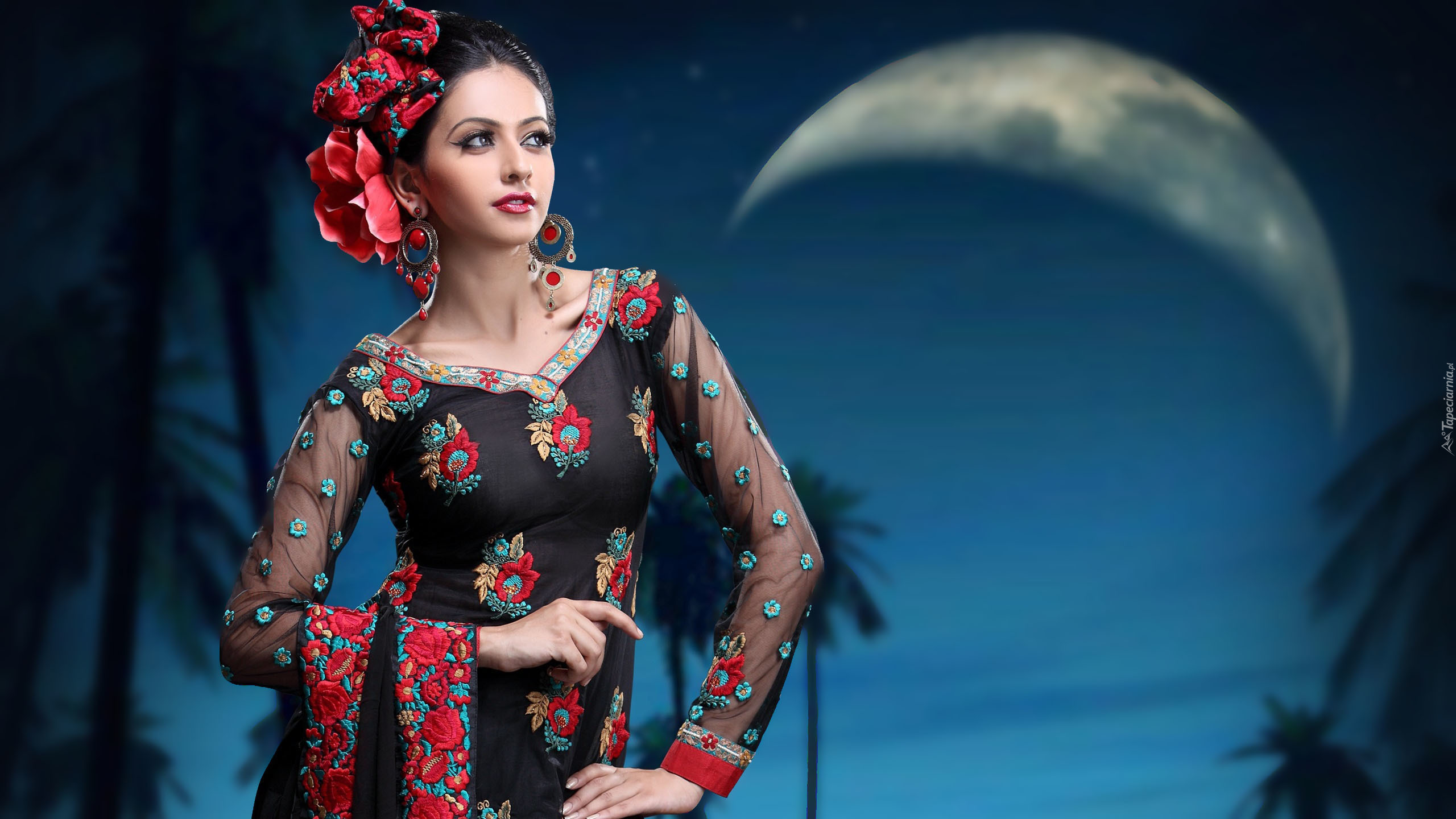 Edytor tapety: Aamna Sharif, Aktorka, Piękny, Strój, Makijaż, Kolczyki, Księżyc