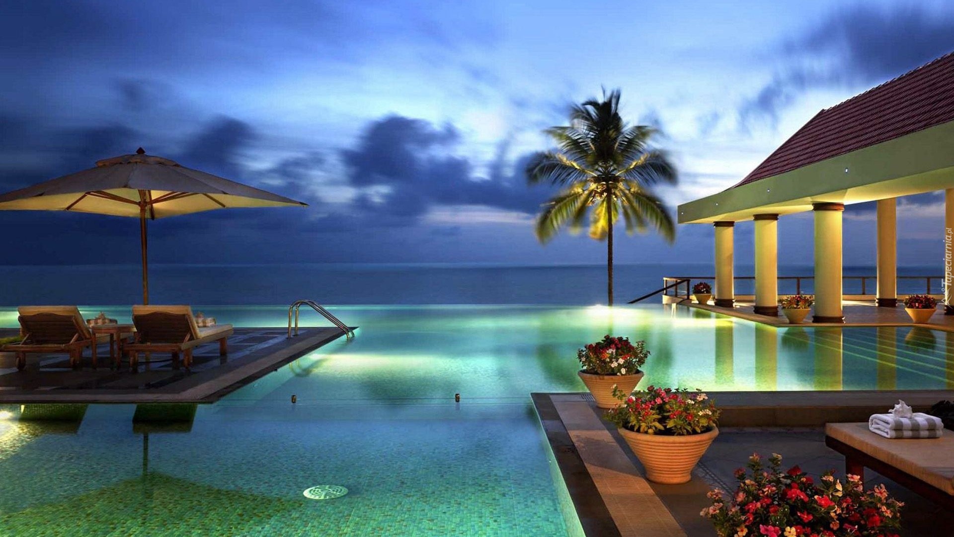 Edytor tapety: Hotel, Basen, Morze