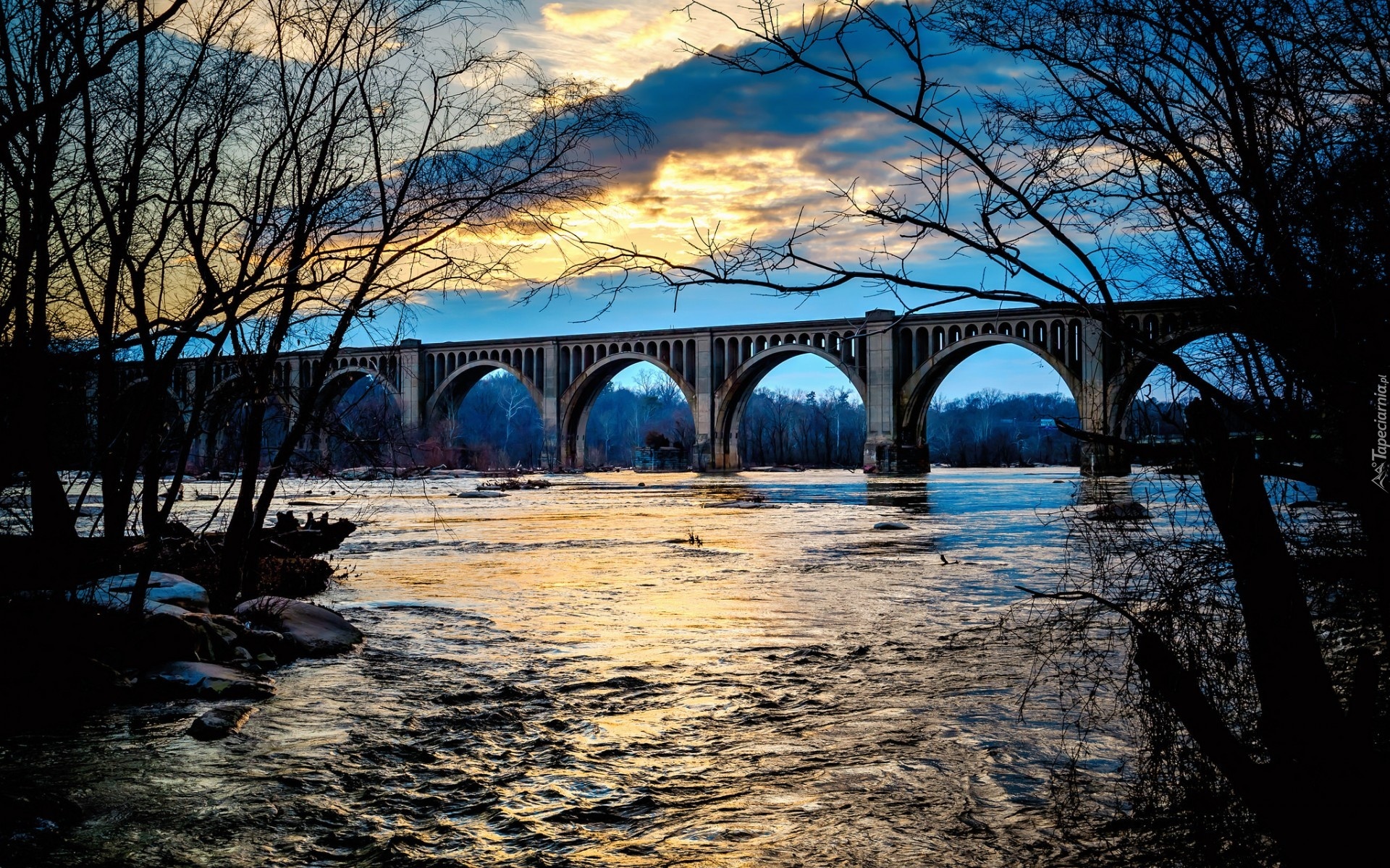 Edytor tapety: Rzeka, Most, Zachód, Słońca