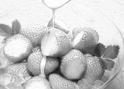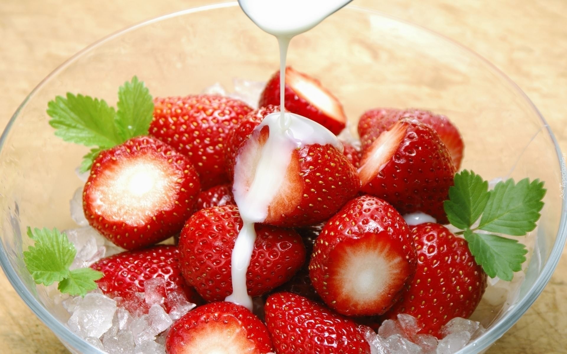 Edytor tapety: Truskawki, Śmietanka, Lód, Miseczka