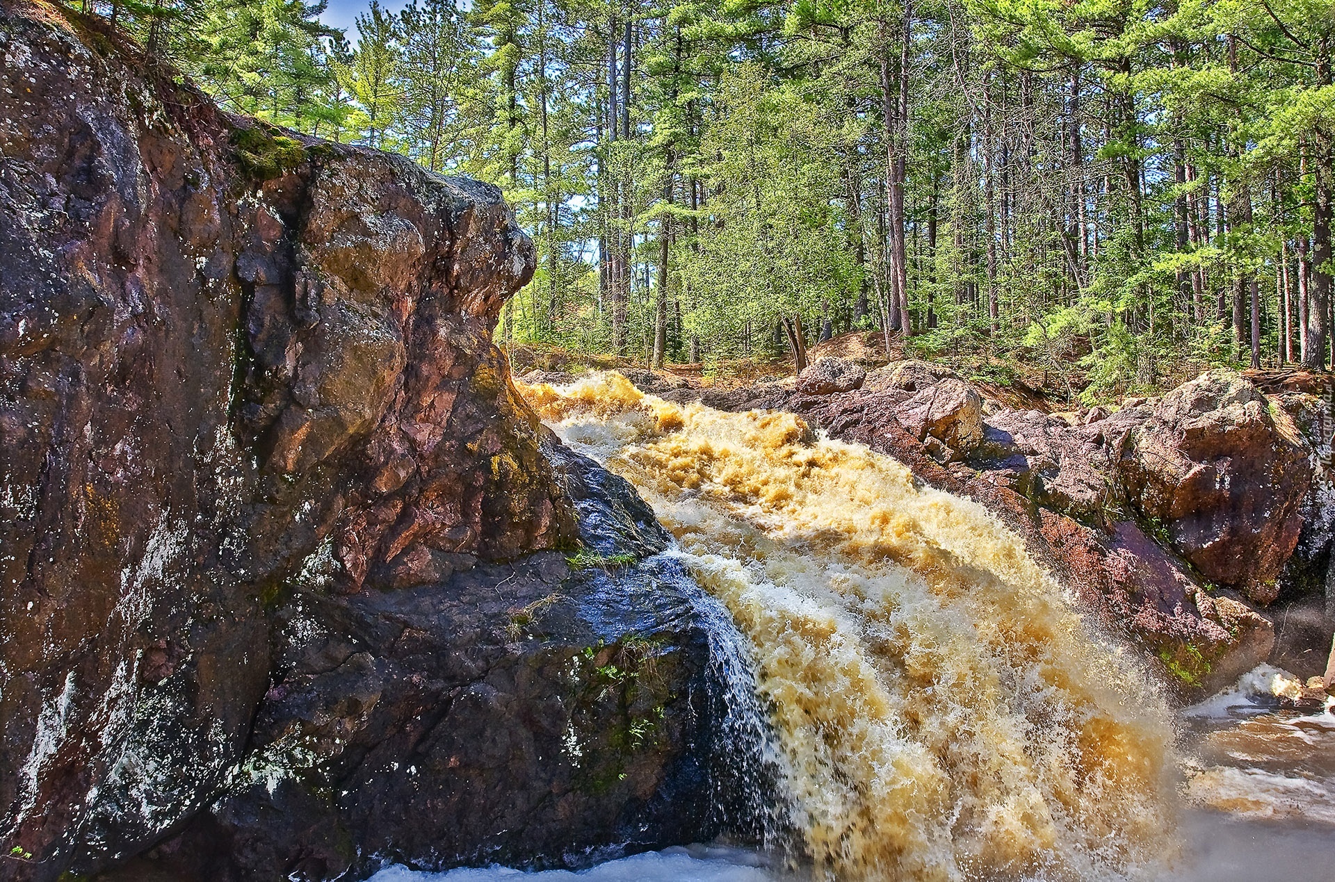 Edytor tapety: Las, Skały, Rzeka, Wodospad