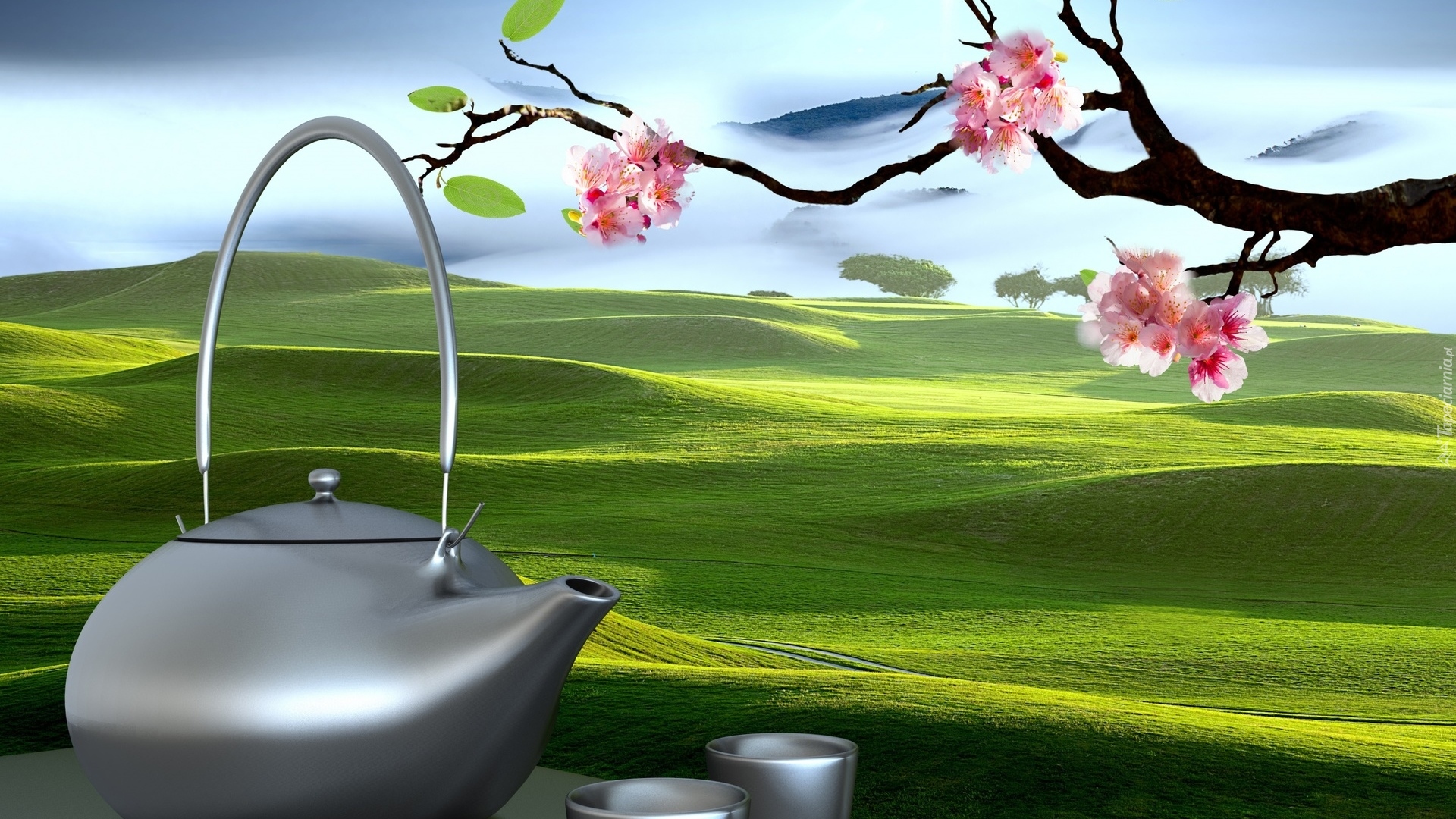 Edytor tapety: Grafika, Pola, Łąki, Drzewo, Owocowe, Gałązka, Czajnik, Imbryk