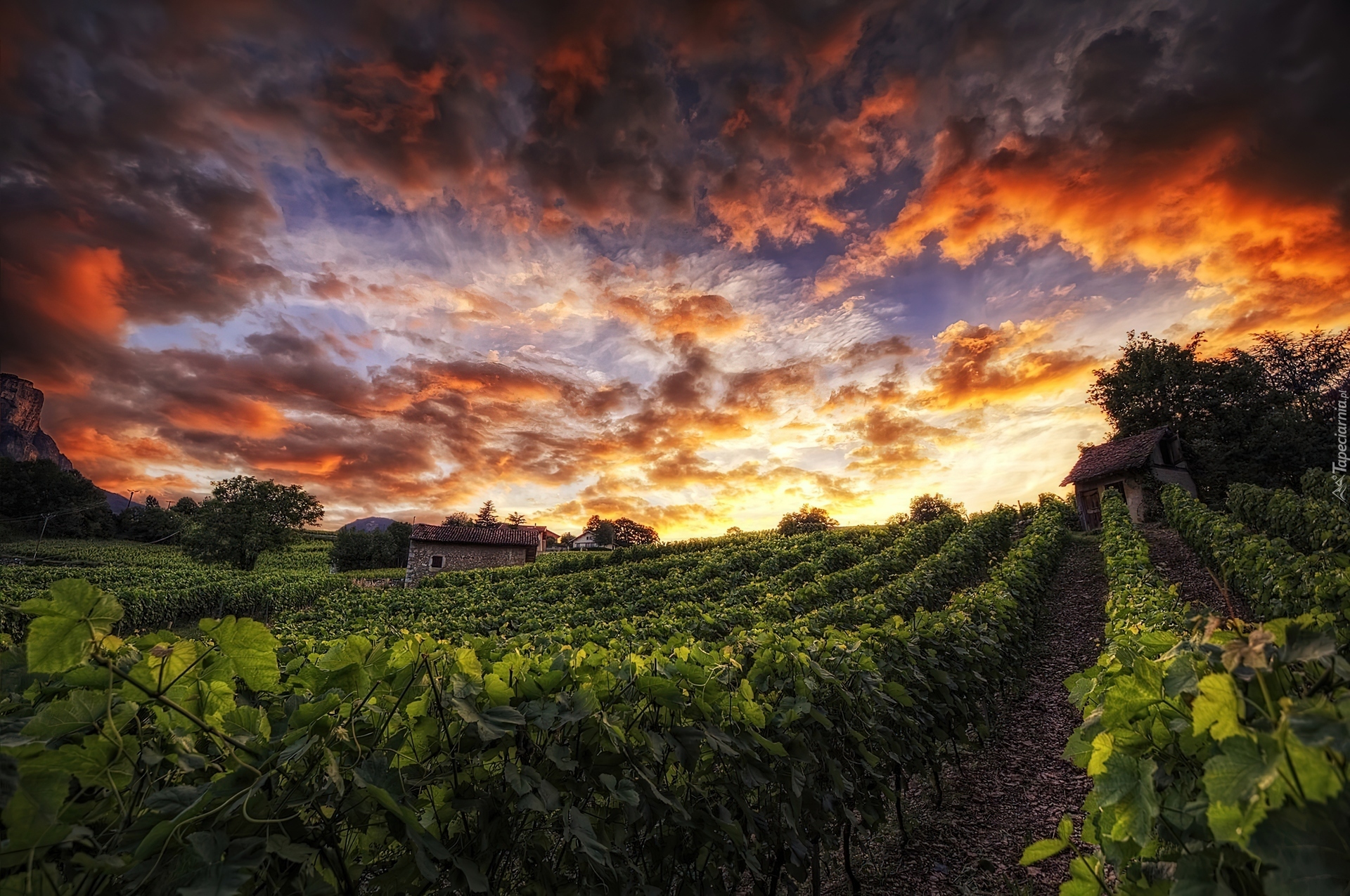Edytor tapety: Plantacja, Winnica, Zachód Słońca