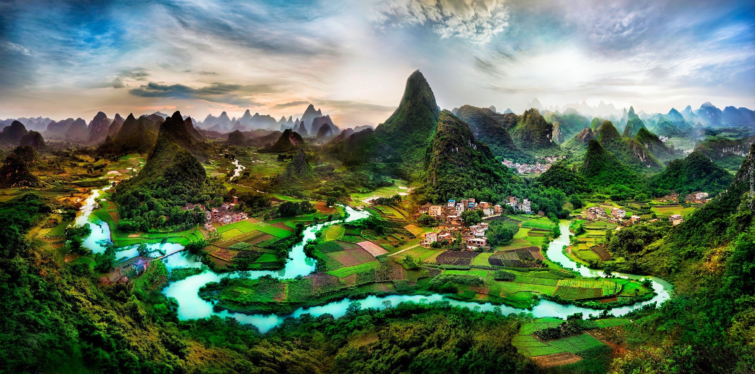 Edytor tapety: Góry, Farmy i Pola, Rzeka, Chiny