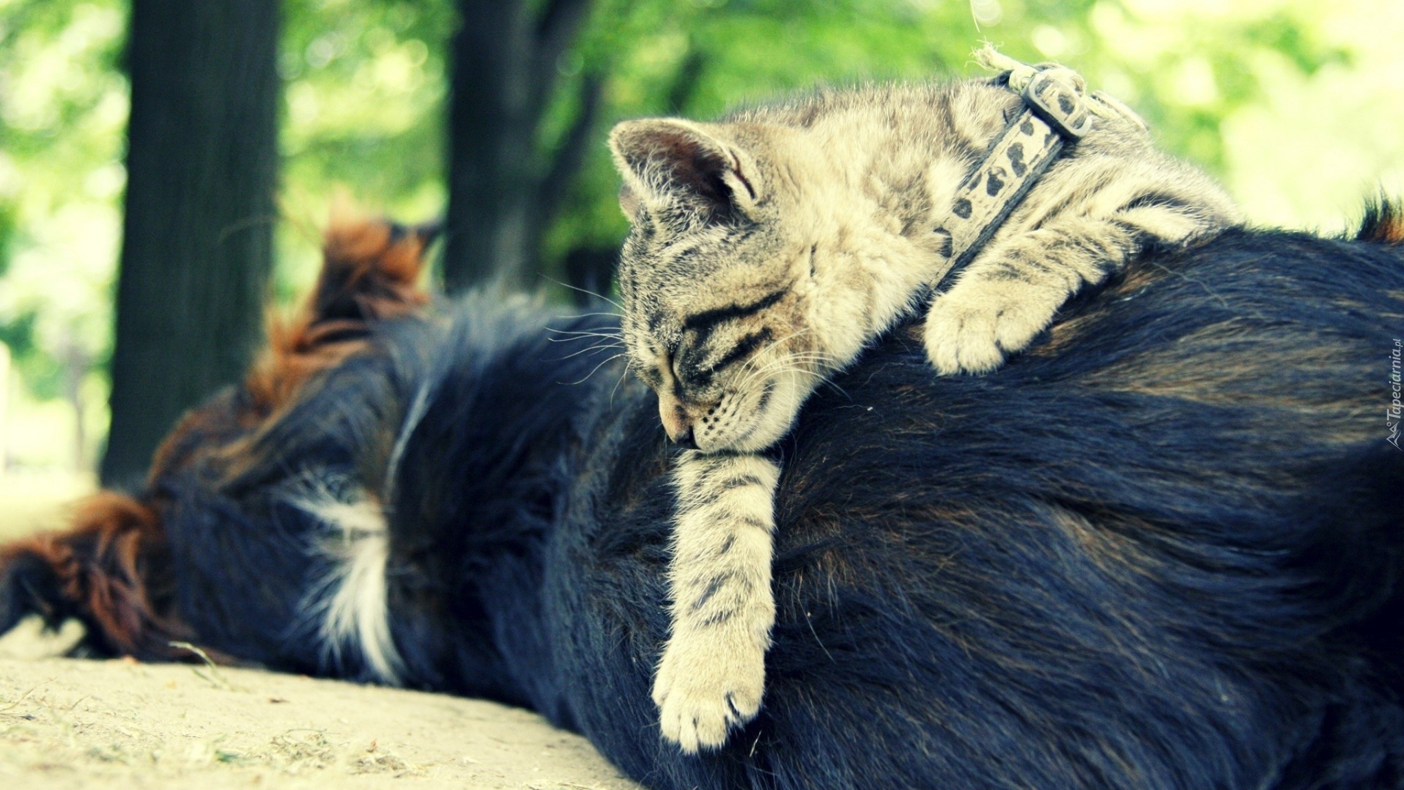 Edytor tapety: Kot, Pies, Sen, Obroża, Przyjaźń