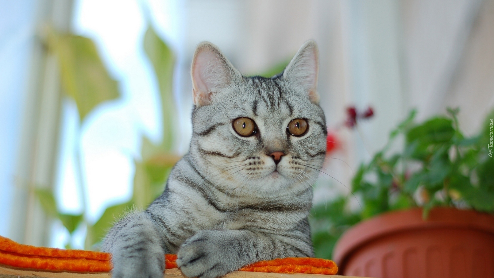 Edytor tapety: Kot, Mordka, Oczy, Łapki, Doniczka, Spojrzenie