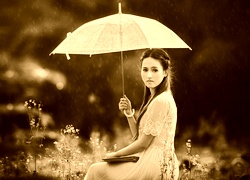 Edytor tapety: Brunetka, Deszcz, Parasolka