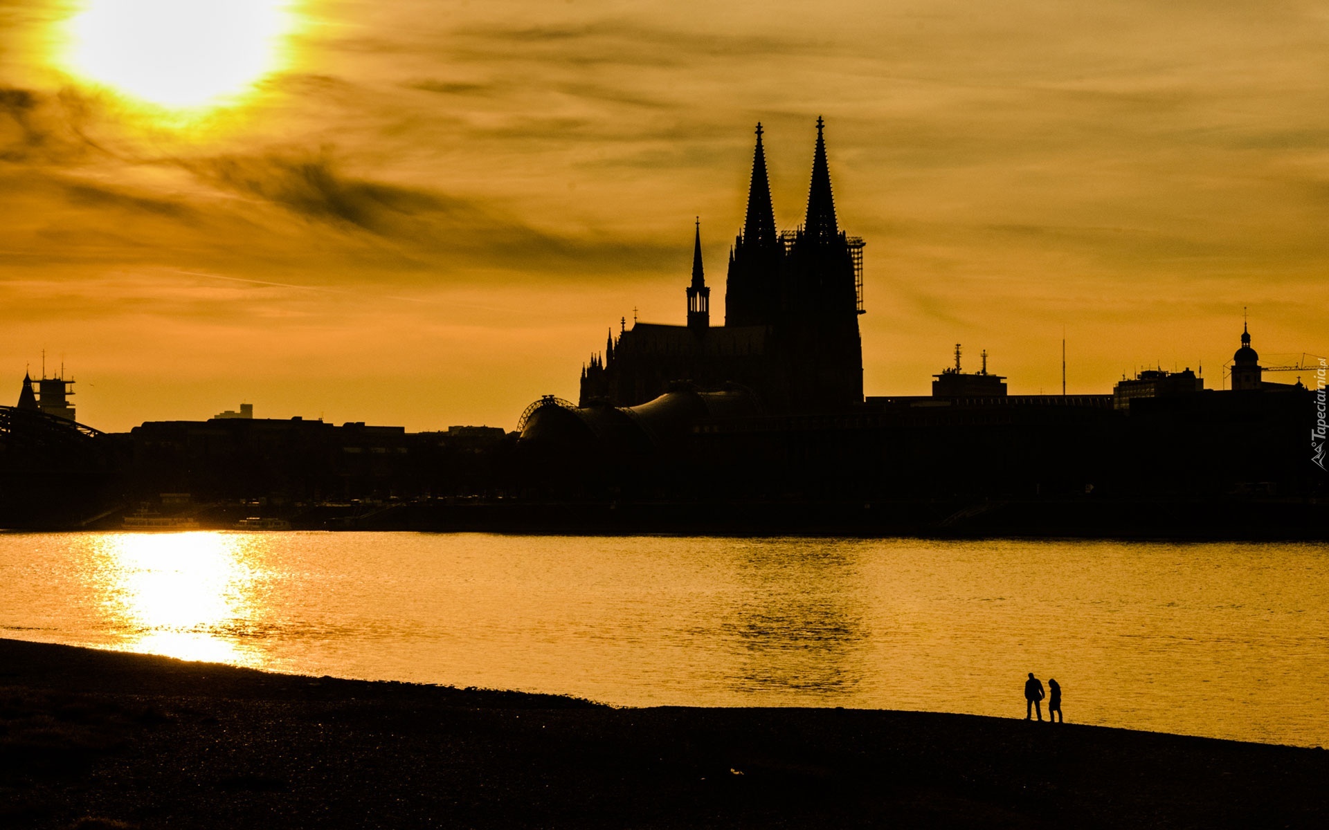 Edytor tapety: Zachód, Słońca, Rzeka, Katedra