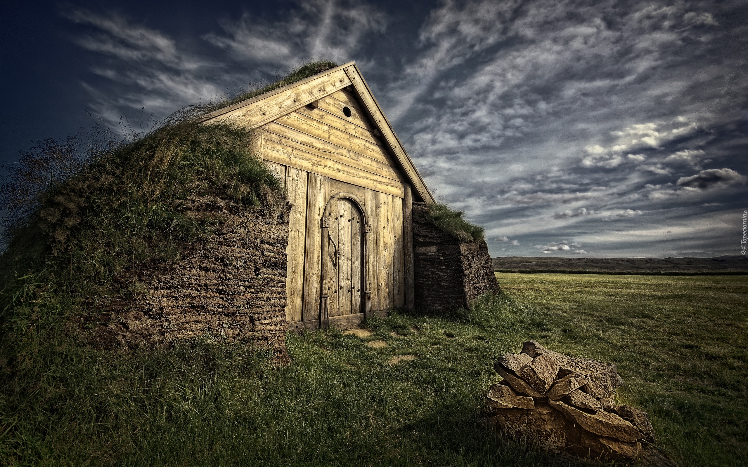 Edytor tapety: Szopa, Łąka, Kamienie, Chmury