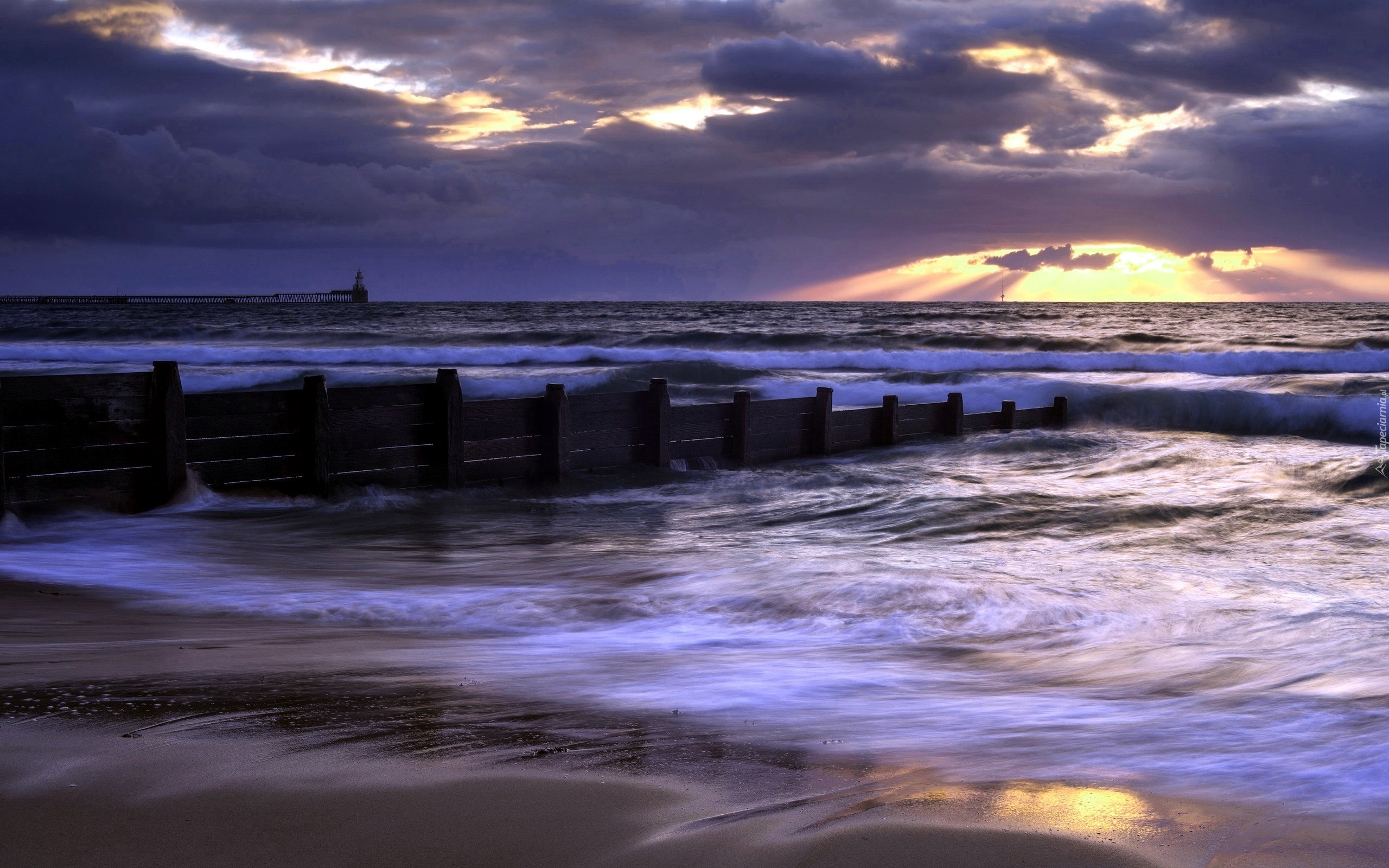 Edytor tapety: Morze, Wieczór, Przebijające Światło