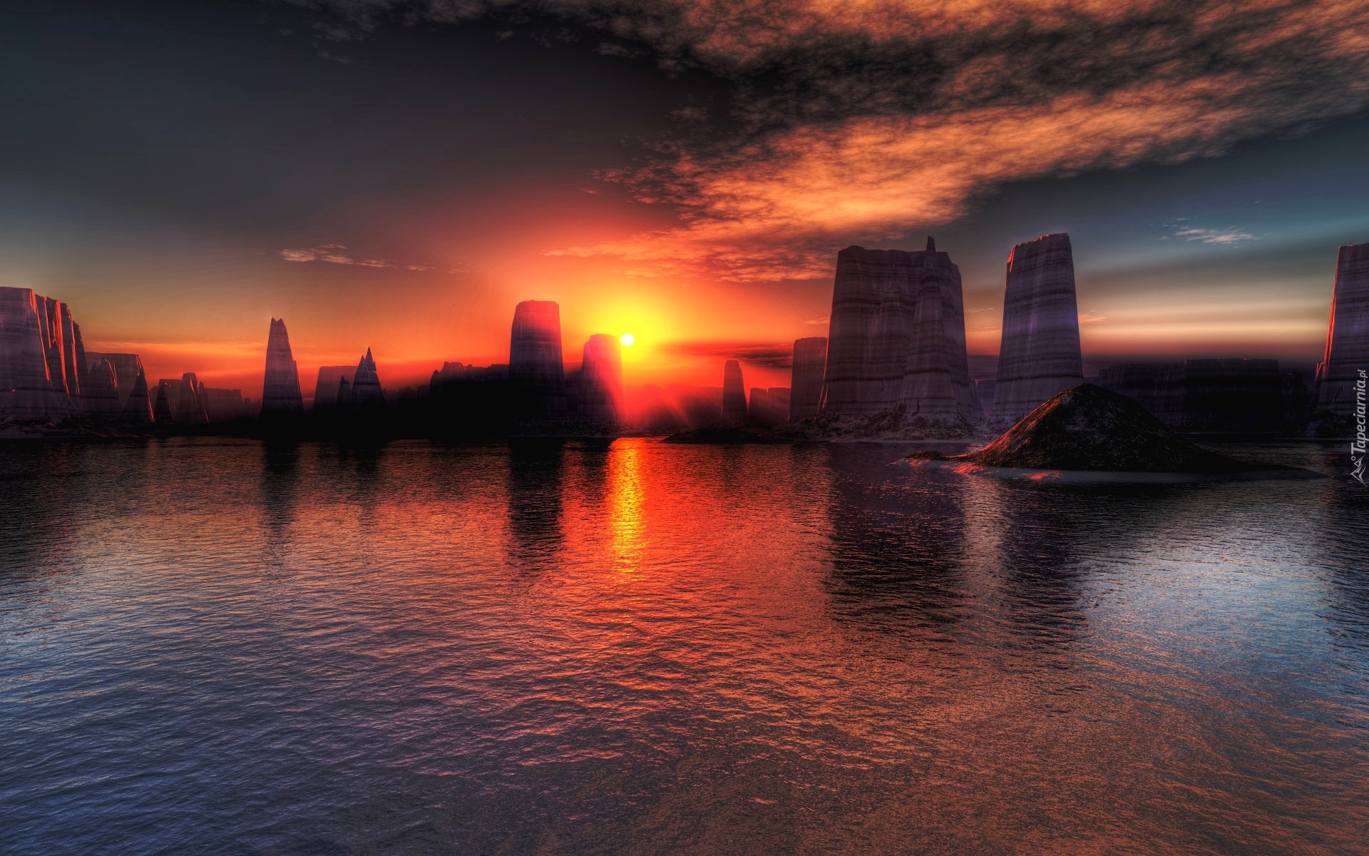 Edytor tapety: Zachód, Słońca, Morze, Skały