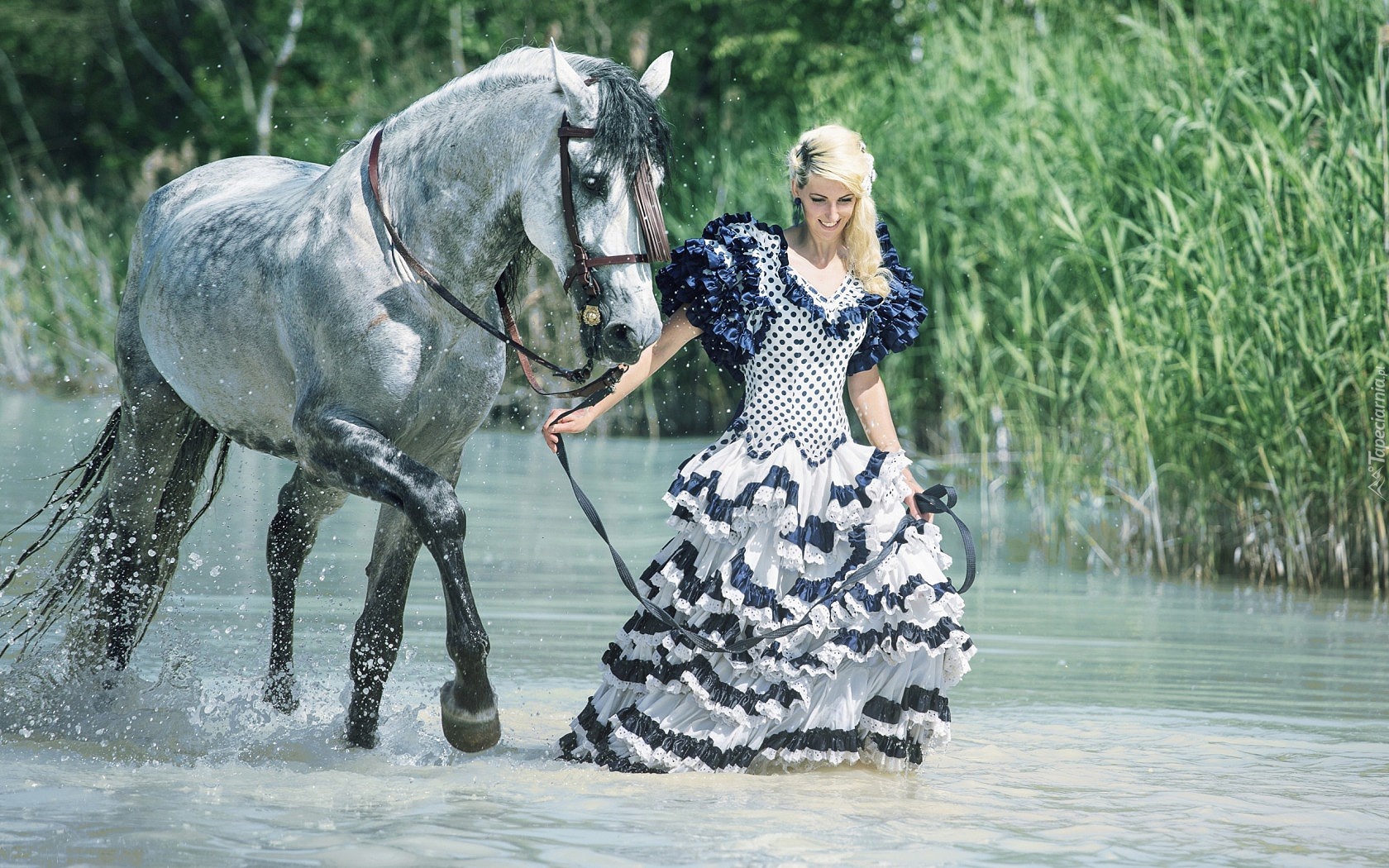 Edytor tapety: Koń, Rzeka, Kobieta