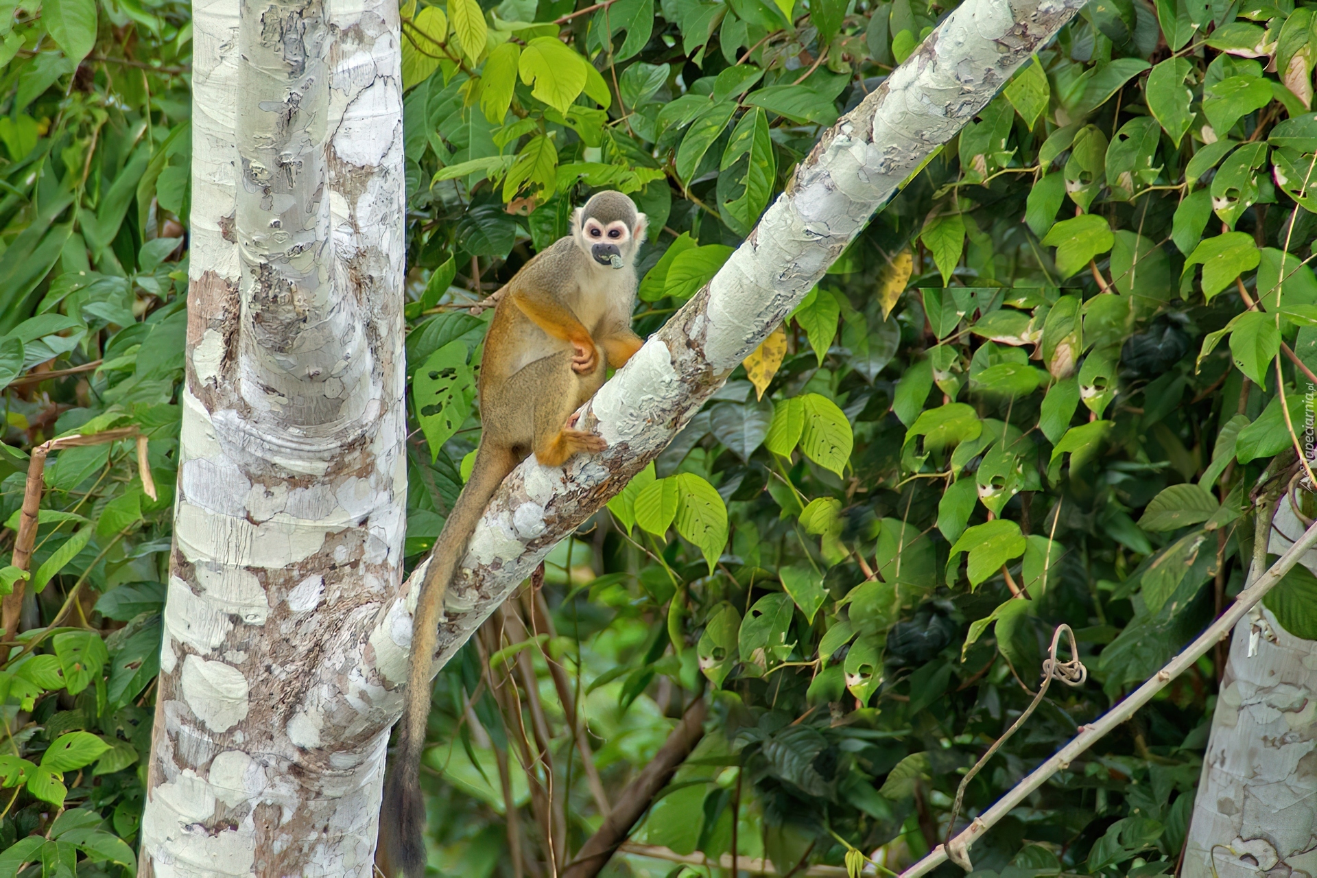 Edytor tapety: Małpka, Saimiri, Drzewo, Listki