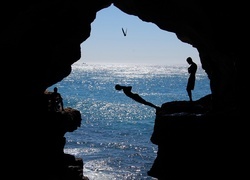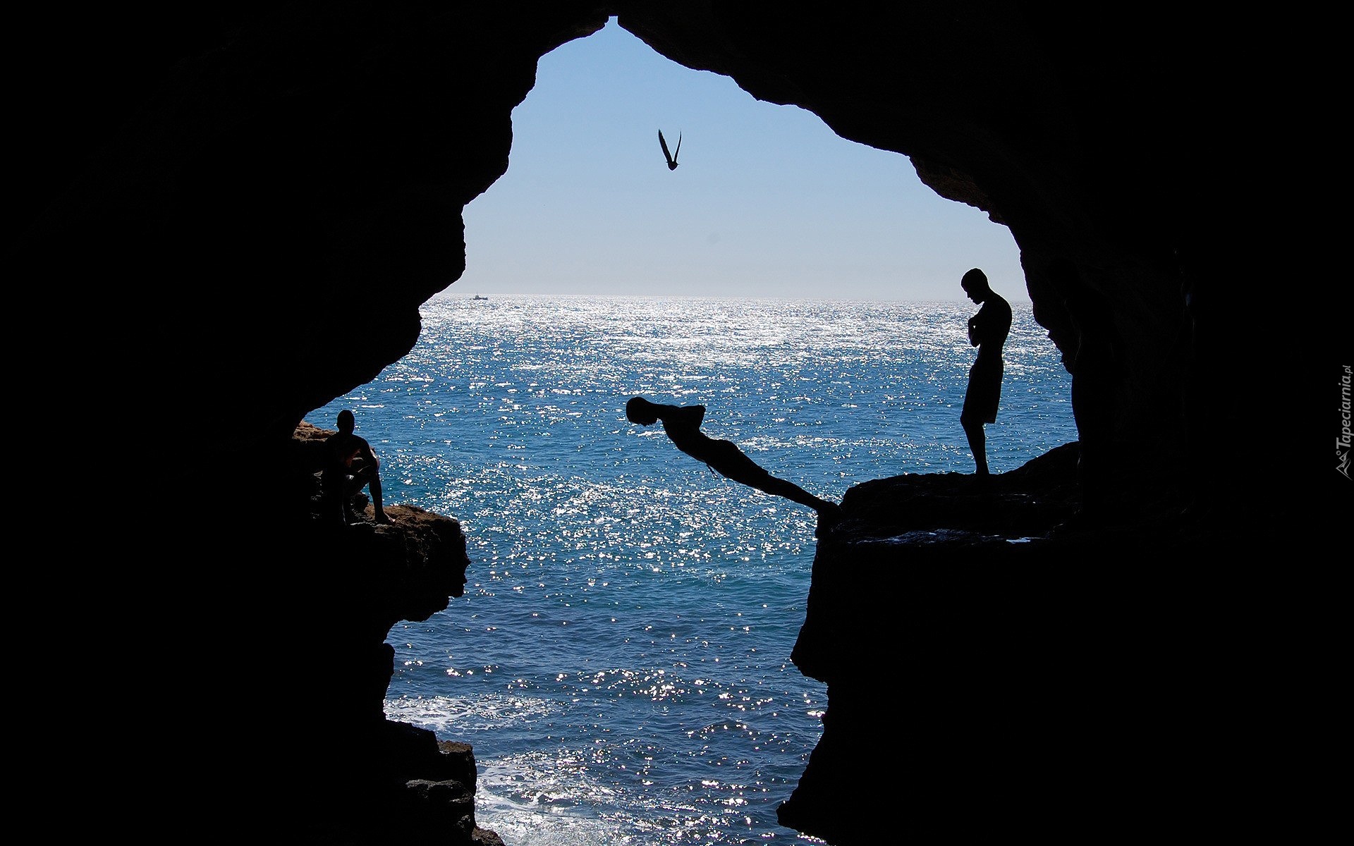 Edytor tapety: Morze, Skały, Postaci, Ludzie