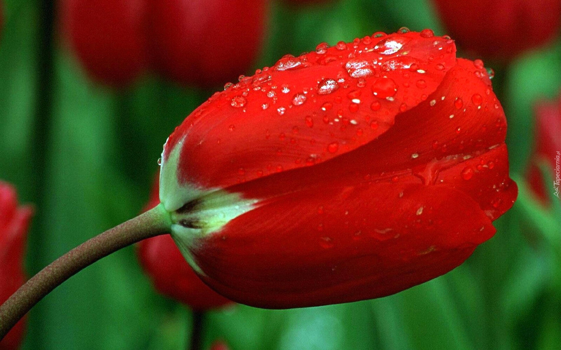 Edytor tapety: Czerwony, Tulipan, Krople, Wody