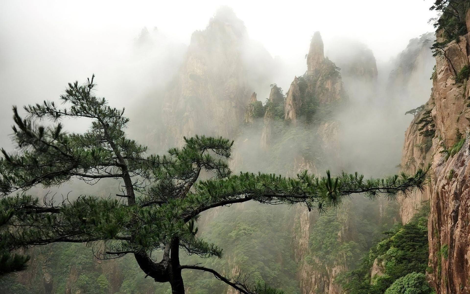 Edytor tapety: Góry, Las, Drzewo, Mgła