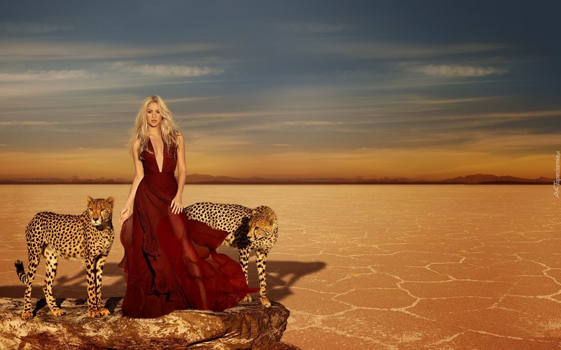 Edytor tapety: Kobieta, Shakira, Dwa, Gepardy, Pustynia