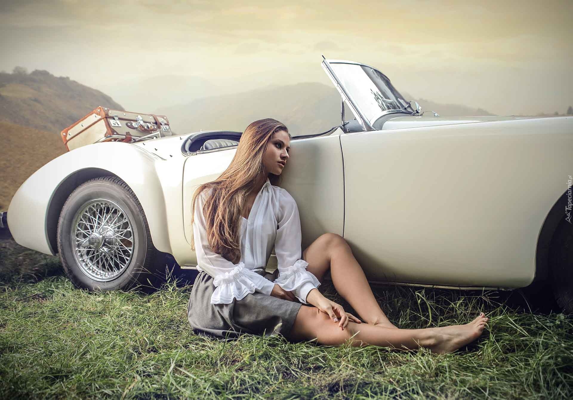 Edytor tapety: Dziewczyna, Moda, Styl, Samochód, Walizka