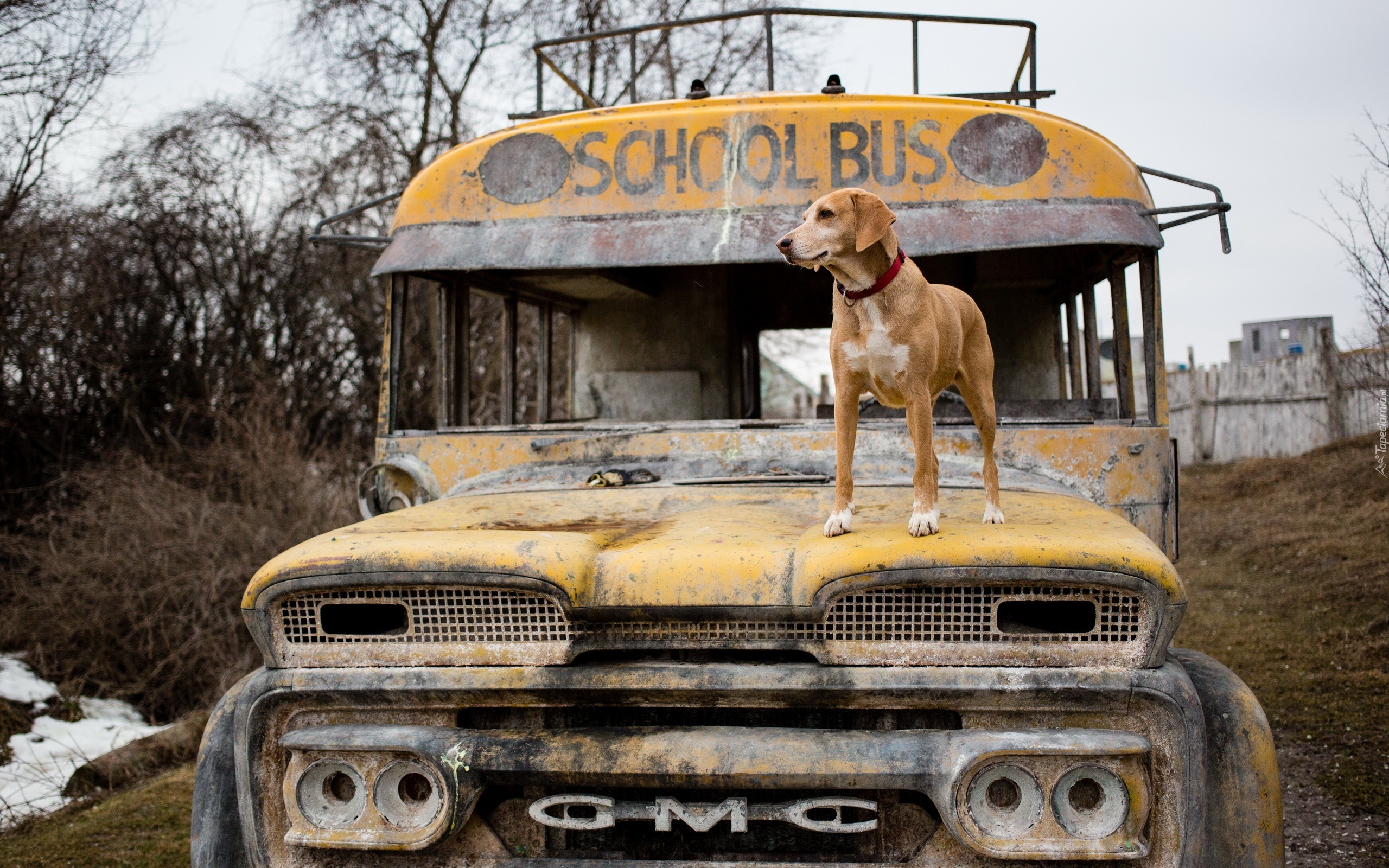 Edytor tapety: Stary, Zardzewiały, Autobus, Pies