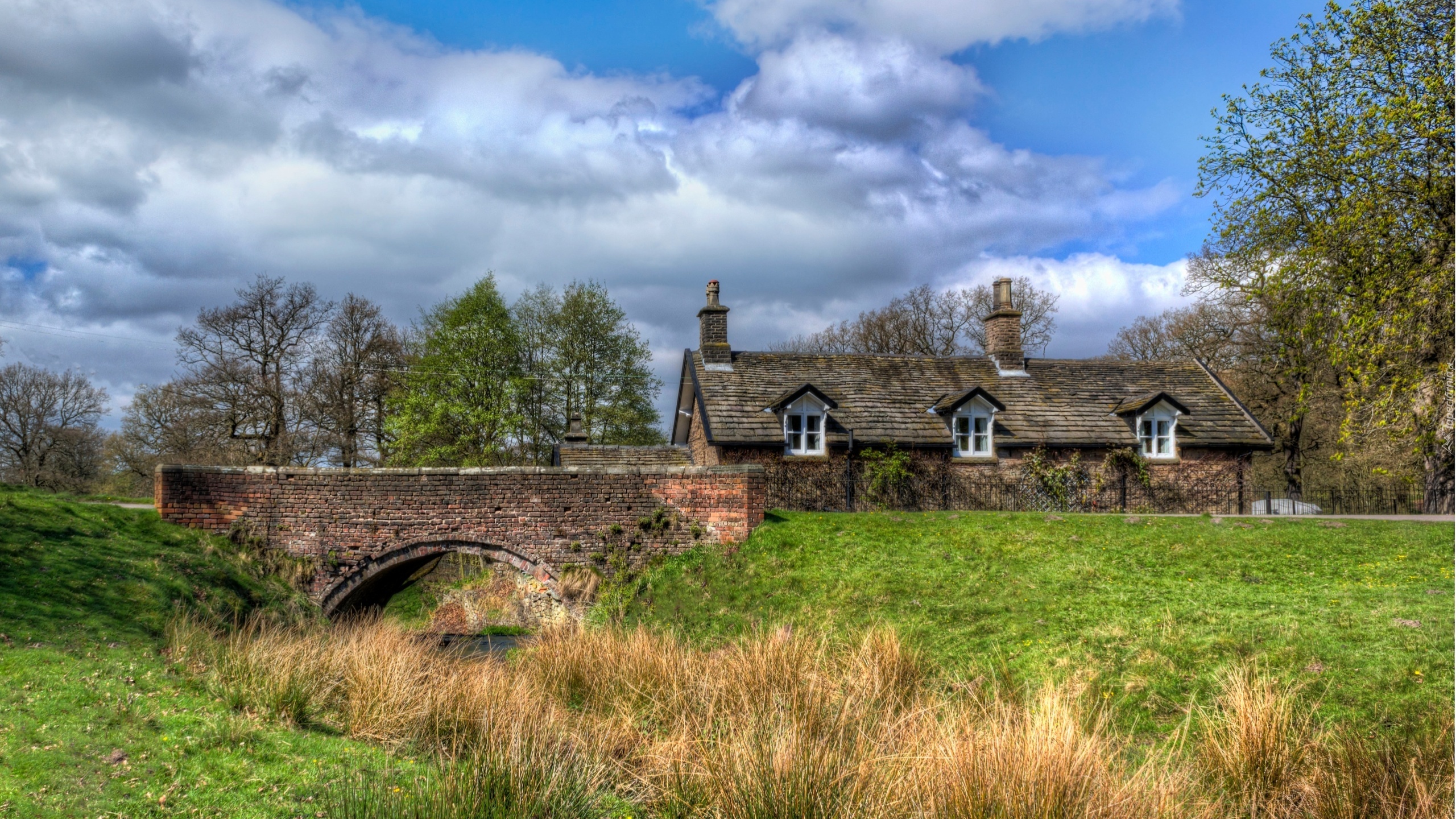Edytor tapety: Dom, Mostek, Drzewa, Trawa