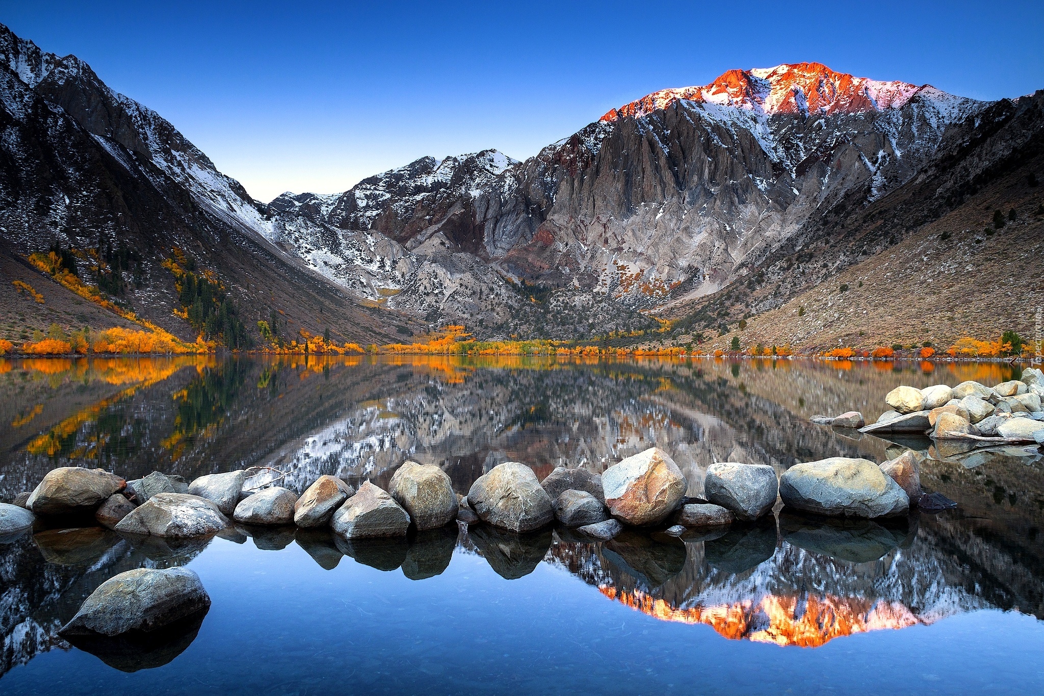 Edytor tapety: Góry, Jezioro, Kamienie, Odbicie