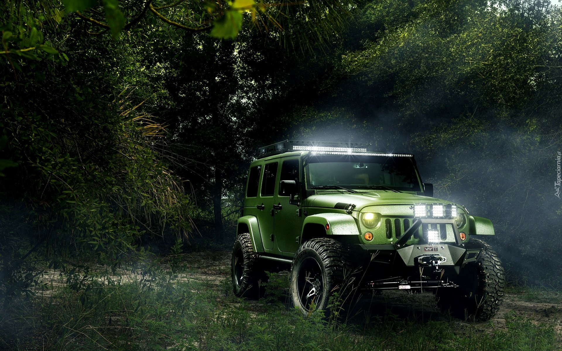 Edytor tapety: Jeep Las, Promienie Słońca, Poranek