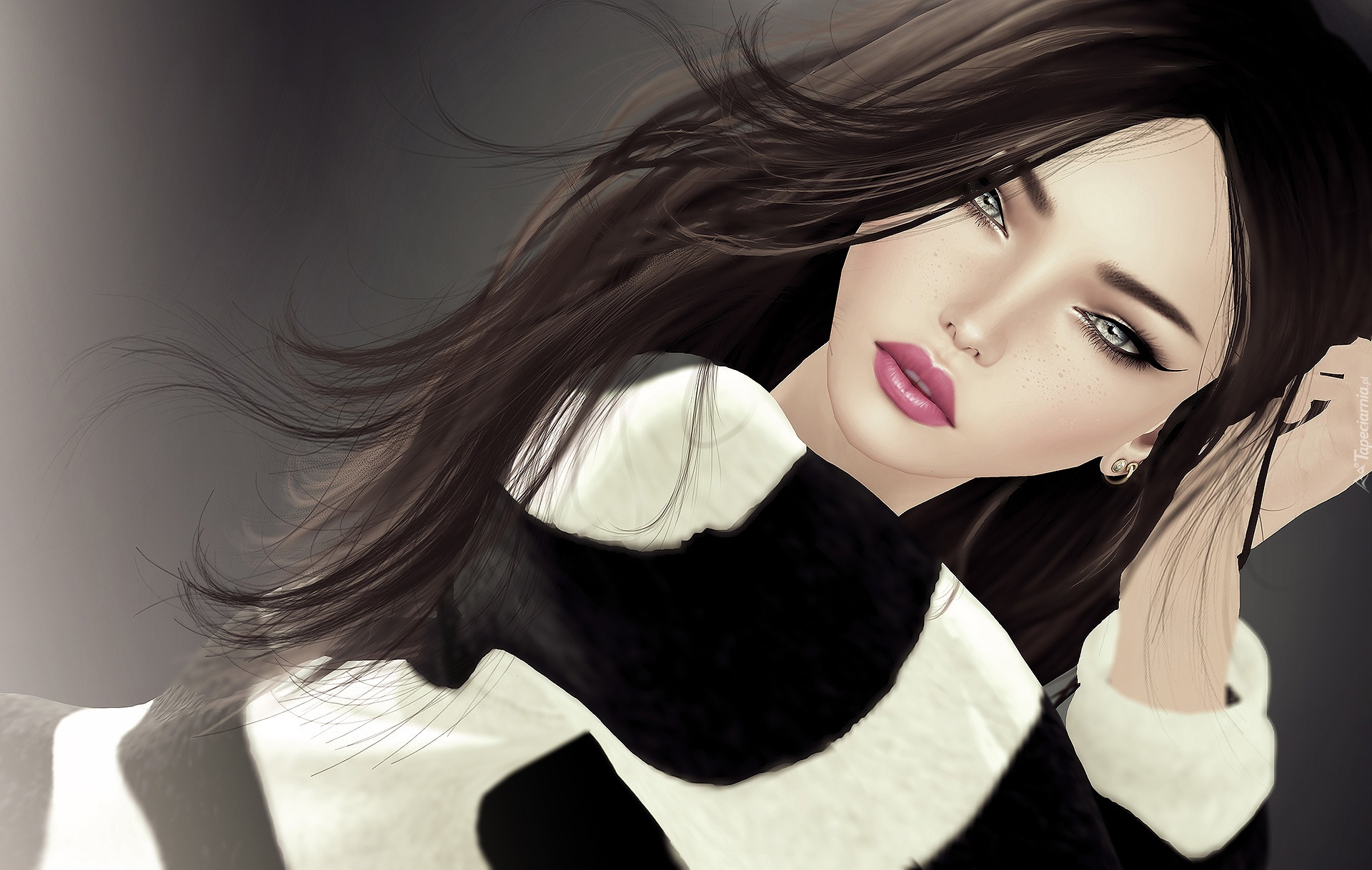 Edytor tapety: Dziewczyna, Grafika, Pasiasty, Sweterek