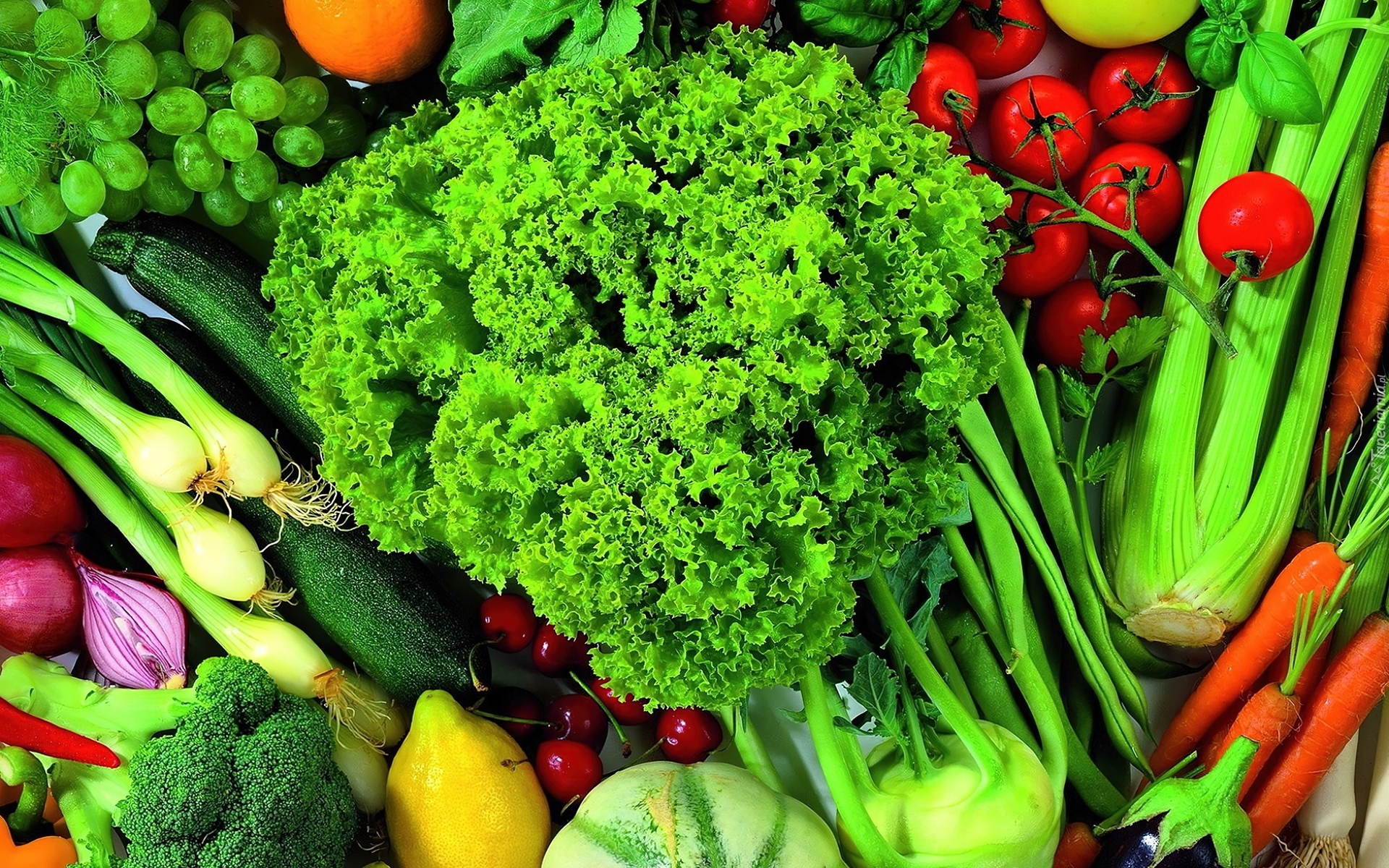 Edytor tapety: Warzywa, Kalarepa, Cebulka, Cytryna, Marchew, Sałata