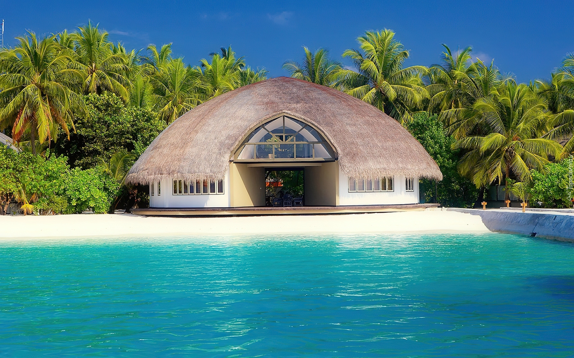 Edytor tapety: Tropiki, Malediwy, Budowla, Hotel, Basen, Palmy