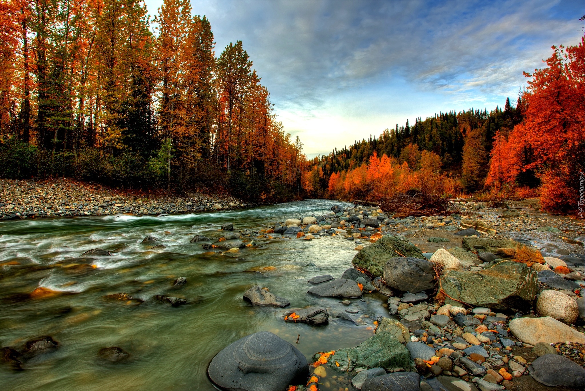 Edytor tapety: Jesień, Las, Potok, Kamienie