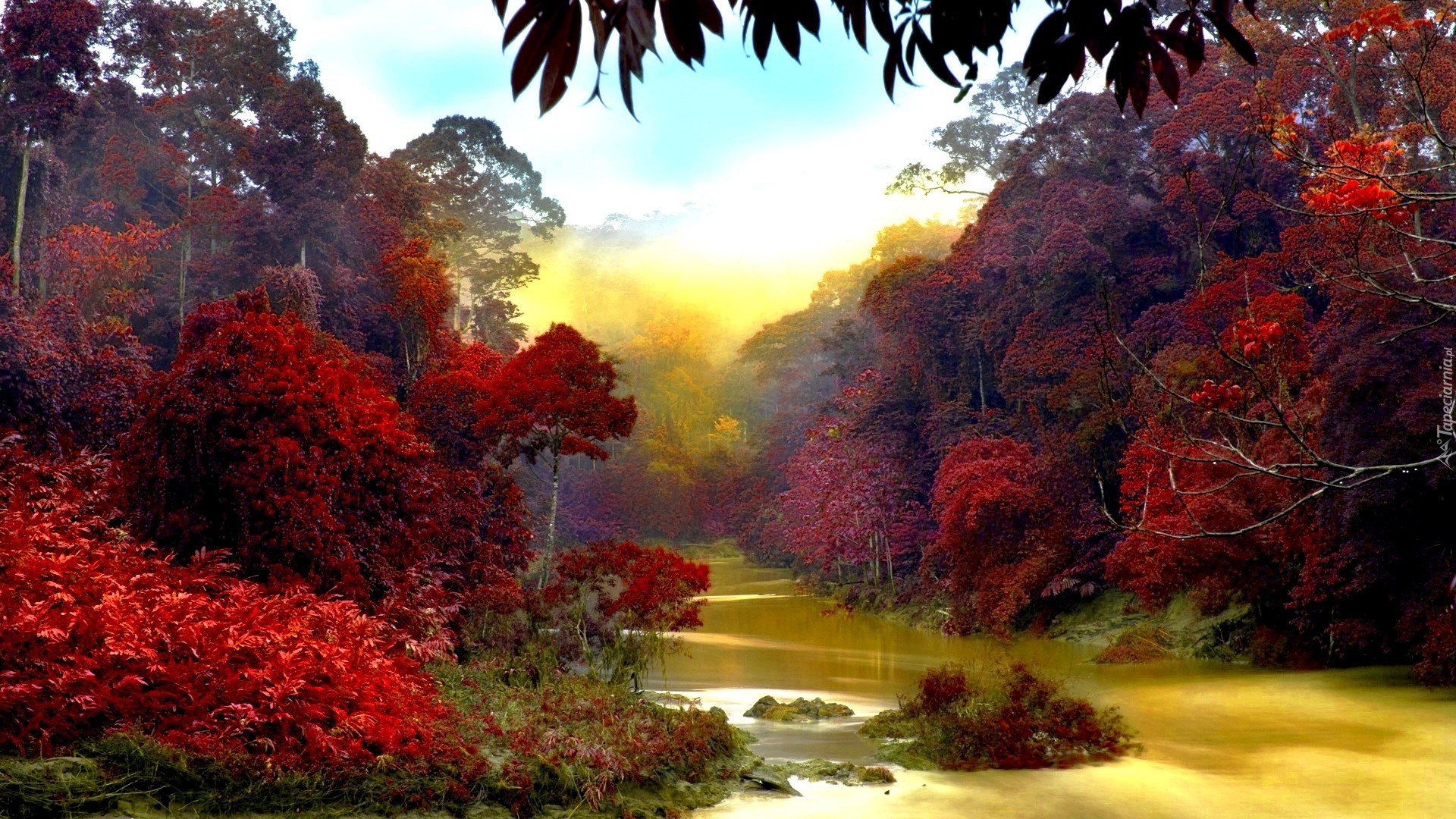 Edytor tapety: Rzeka, Las, Kolorowe, Drzewa