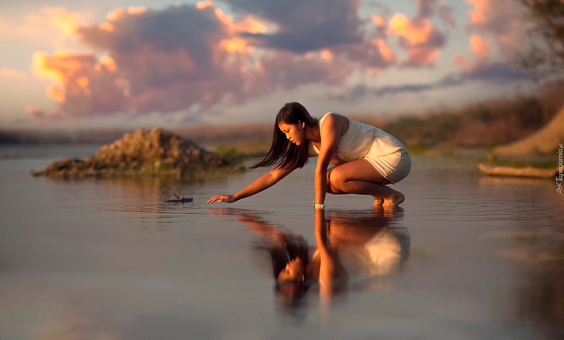 Edytor tapety: Dziewczyna, Brunetka, Jezioro