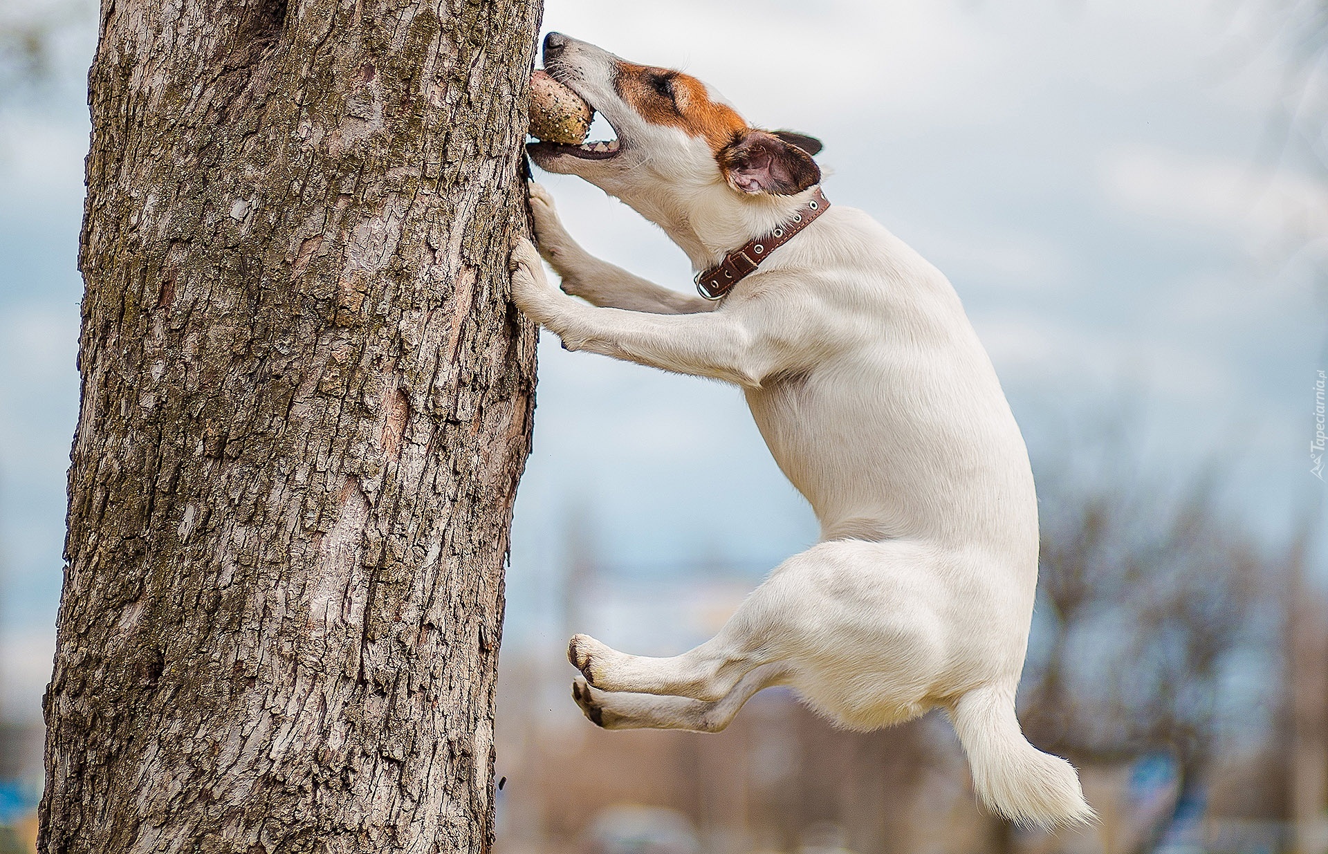 Edytor tapety: Pies, Jack Russell Terrier, Drzewo, Skok