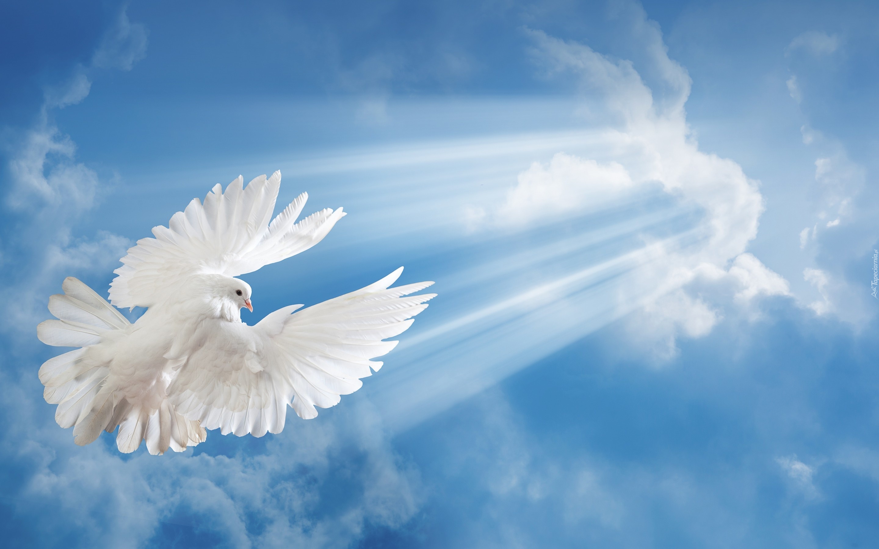 Edytor tapety: Gołąbek, Niebo, Promienie