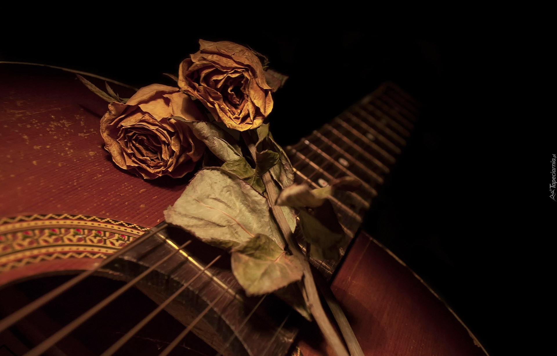 Edytor tapety: Suche, Róże, Gitara