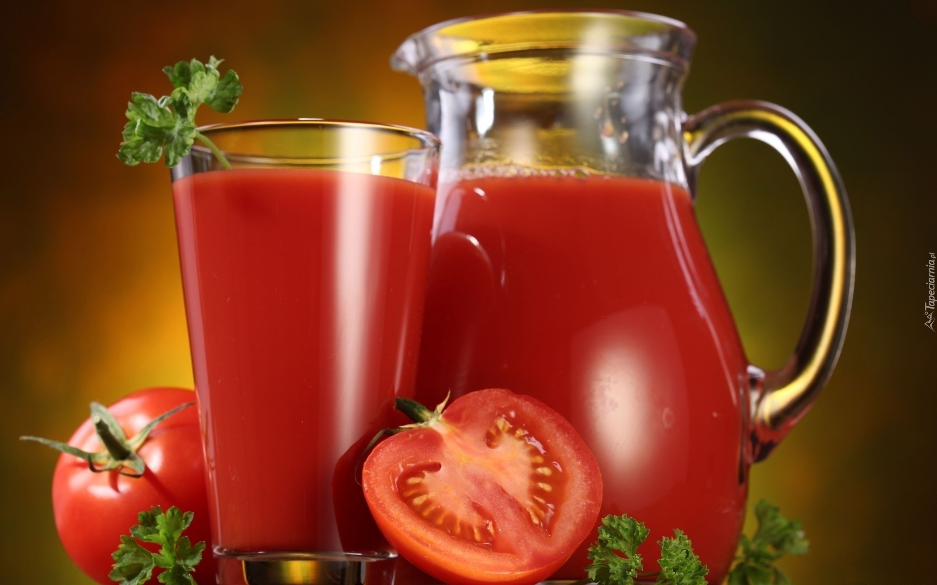 Edytor tapety: Pomidory, Sok, Pomidorowy, Szklanka, Dzbanek