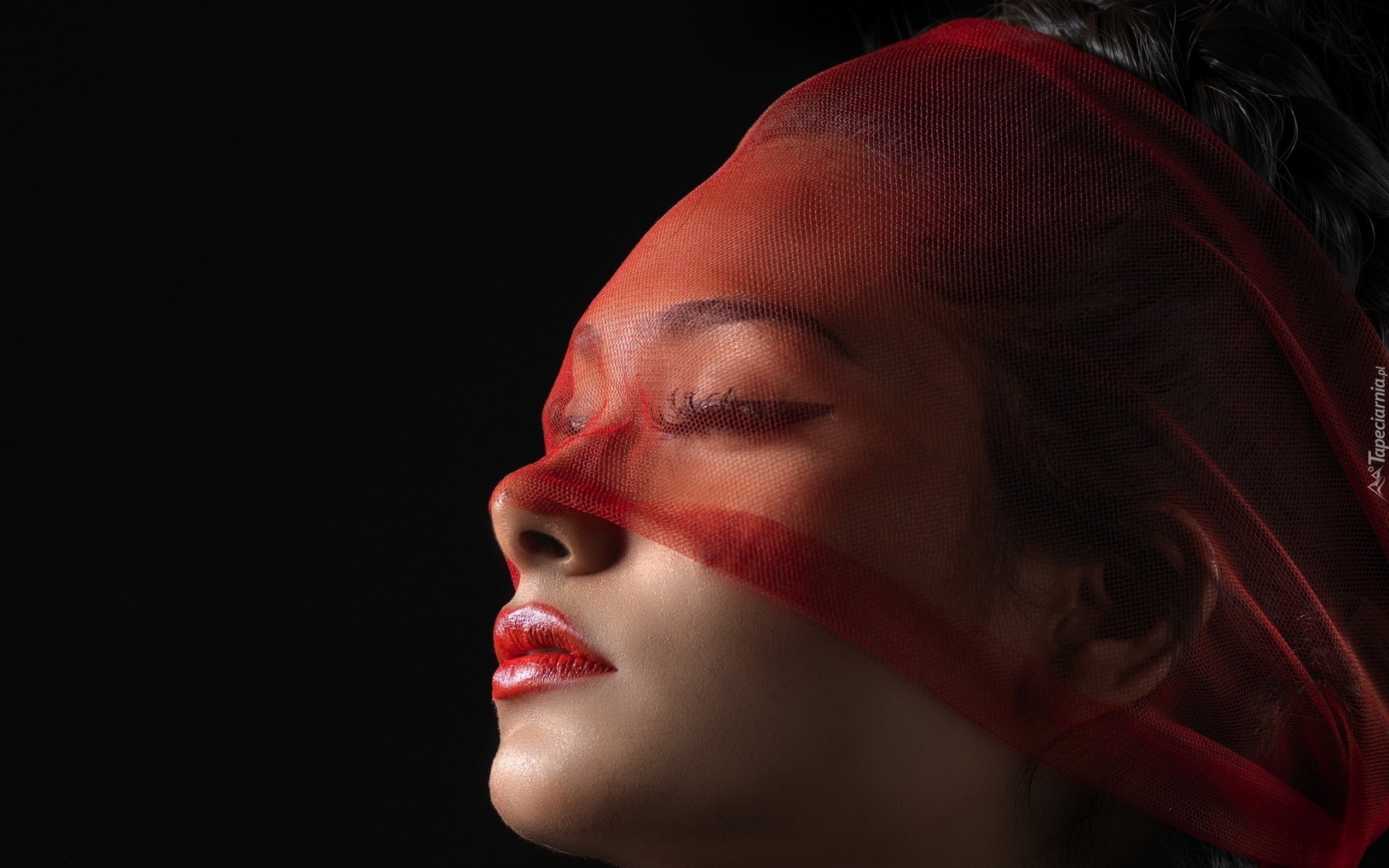 Edytor tapety: Kobieta, Makijaż, Czerwona, Woalka