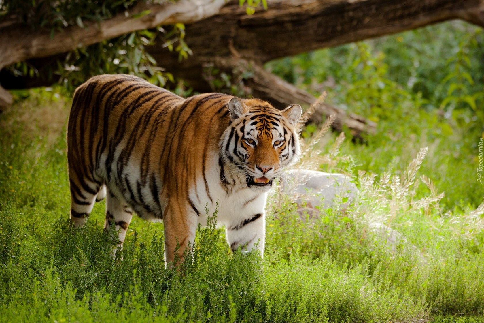 Edytor tapety: Tygrys, Łąka, Kamienie, Drzewo