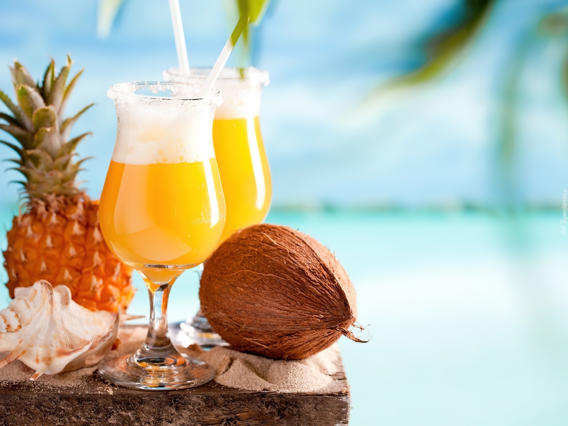 Edytor tapety: Dwa, Drinki, Kokos, Ananas, Muszelka