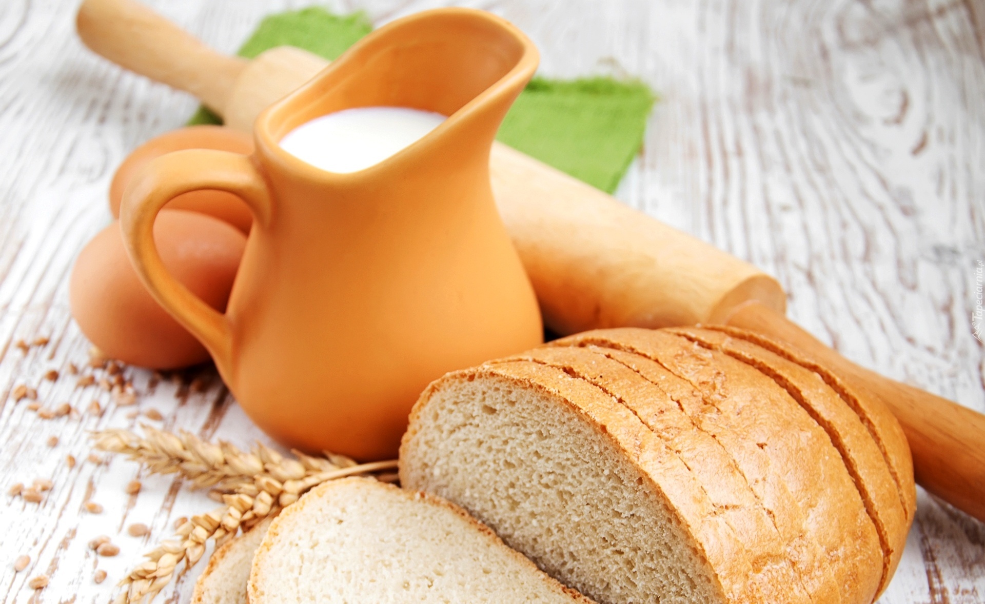 Edytor tapety: Chleb, Dzbanek, Mleko, Jajka, Kłosy, Wałek