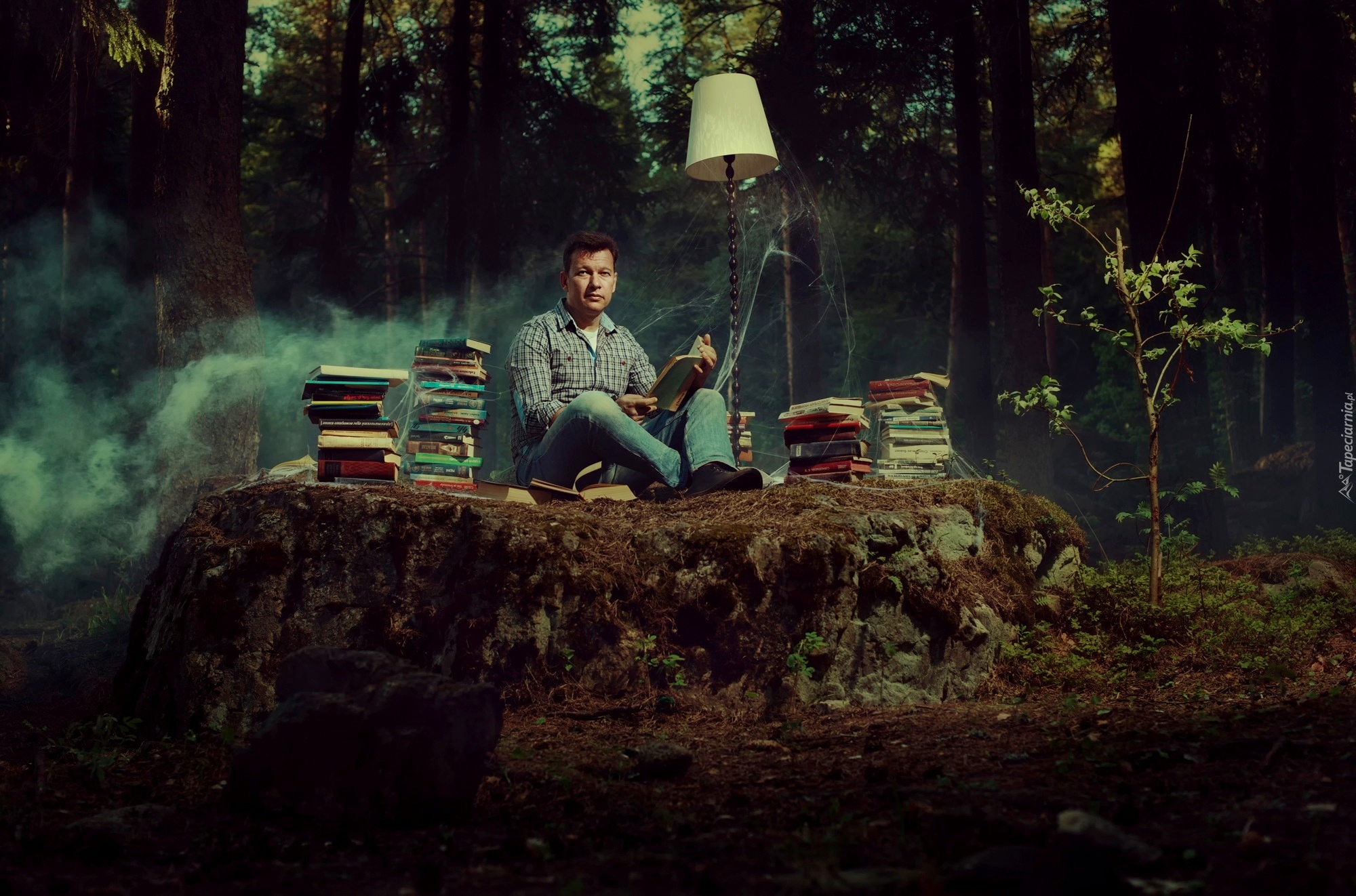 Edytor tapety: Las, Książki, Mężczyzna, Lampka