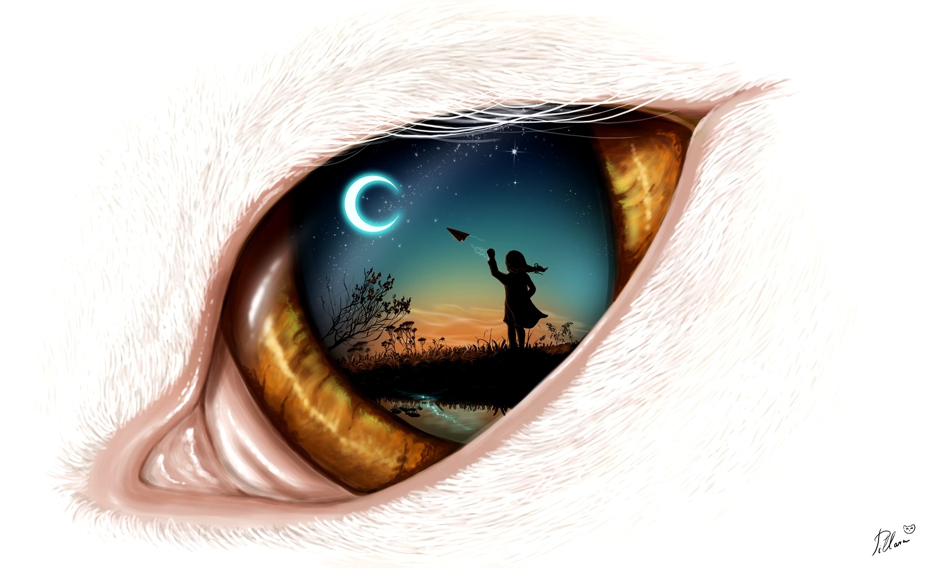 Edytor tapety: Fantasy, Oko, Noc, Księżyc, Postać