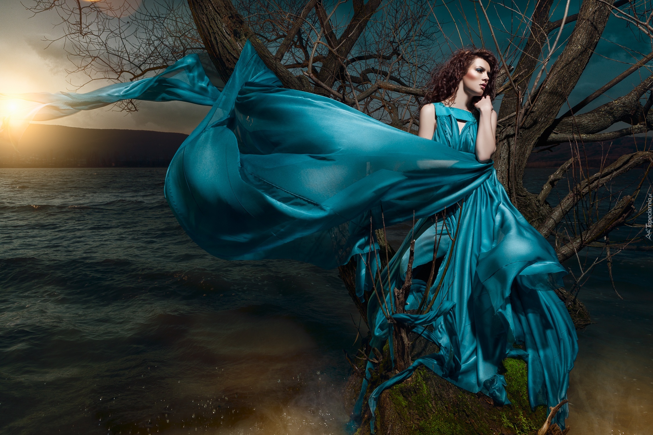 Edytor tapety: Kobieta, Blekitna, Suknia