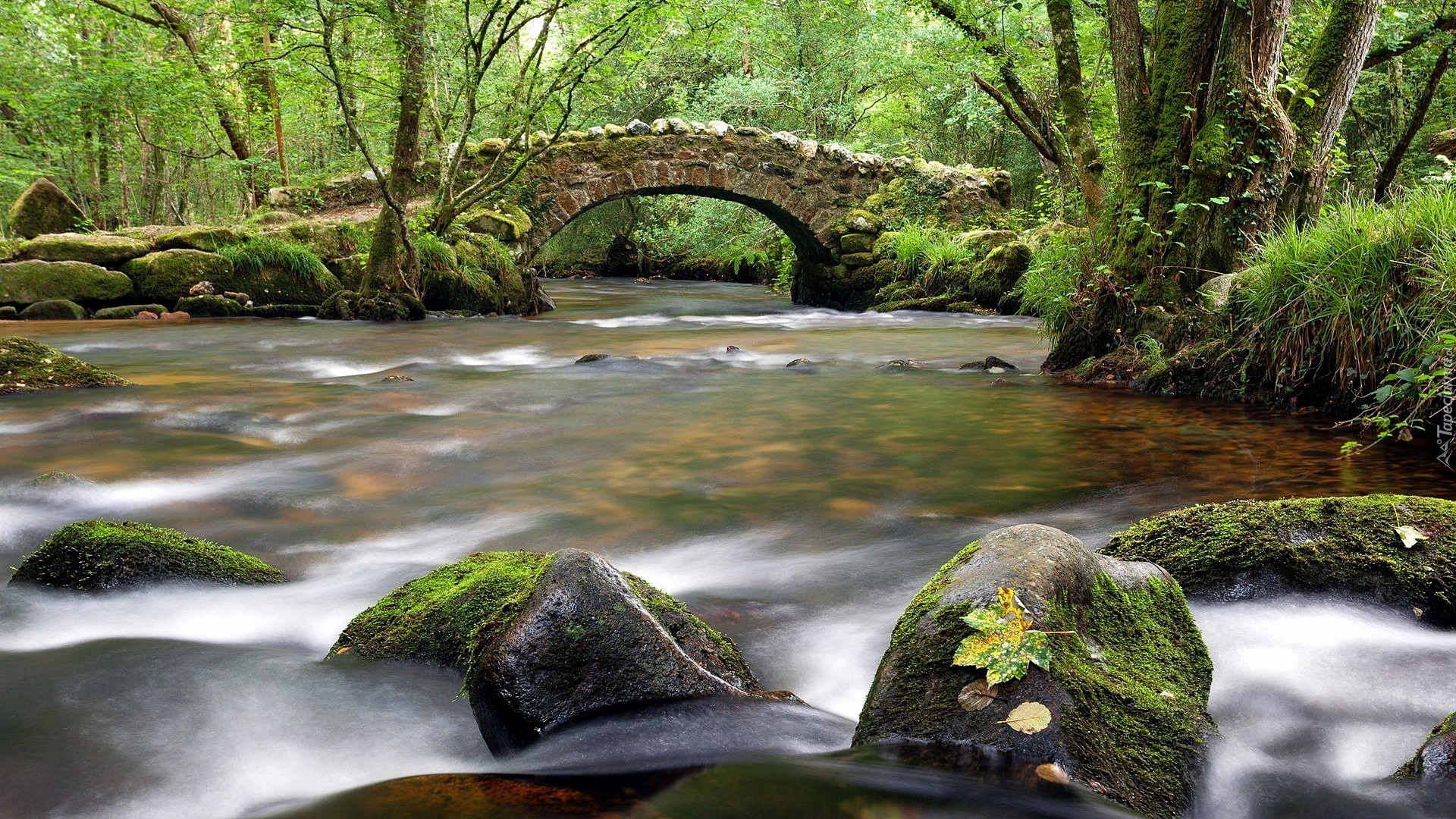 Edytor tapety: Las, Rzeka, Omszałe, Głazy, Kamienny, Most
