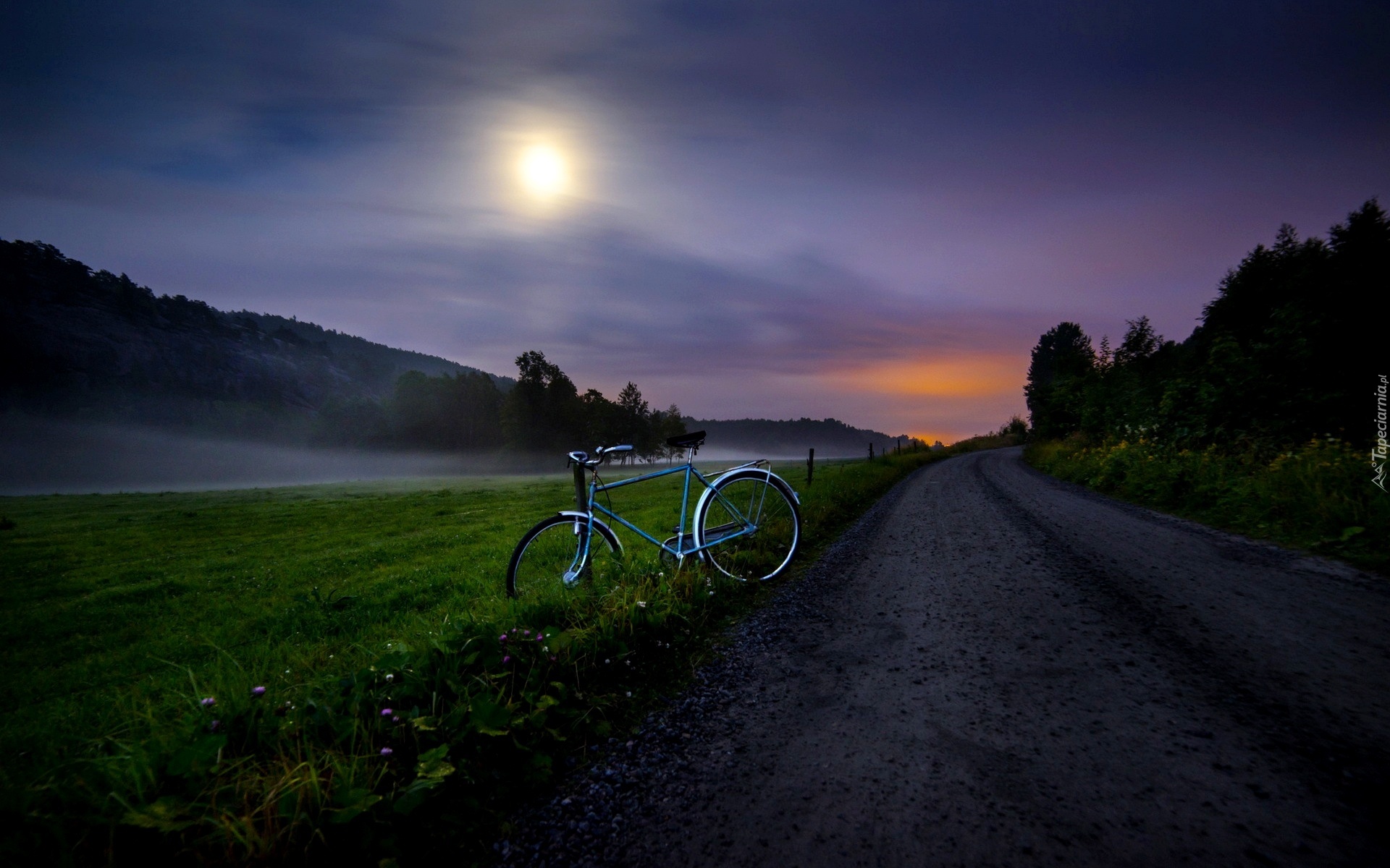 Edytor tapety: Rower, Droga, Mgła, Księzyc